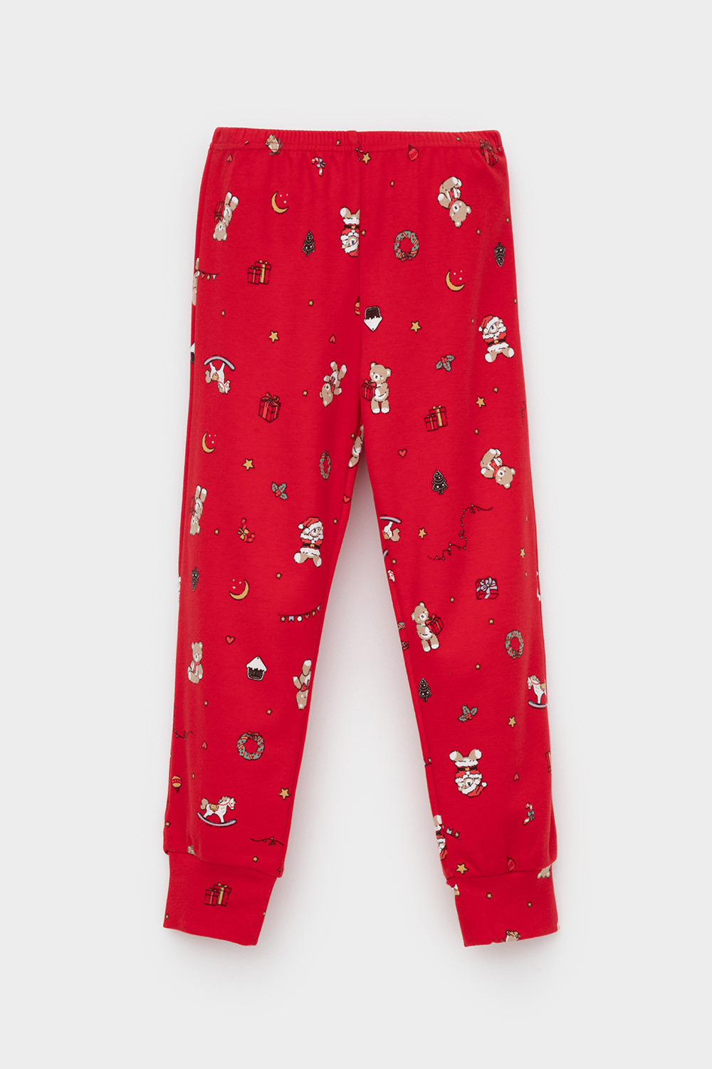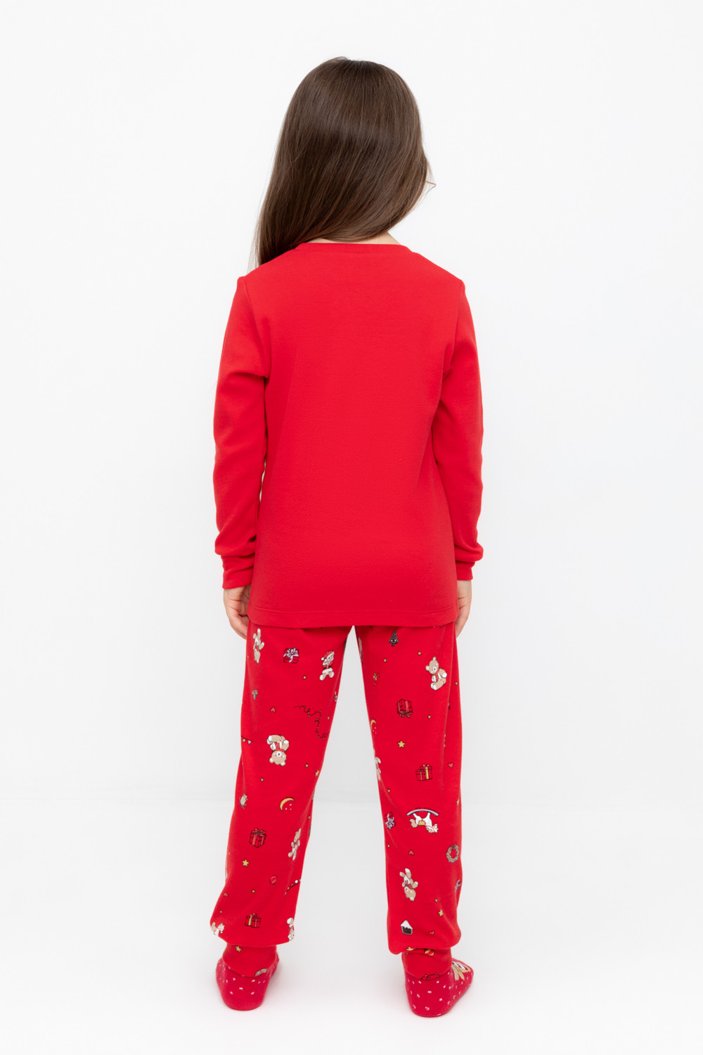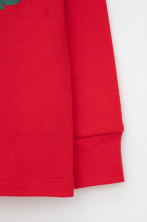Трикотажный пижамный комплект из натурального хлопка. У джемпера длинные втачные рукава с мягкими манжетами. Брюки с удобным поясом на резинке и эластичными манжетами. Оригинальная набивка и принт выполнены из стойких, гипоаллергенных текстильных красителей. Все трикотажные полотна производятся в соответствии с нормами Швейцарского сертификата ЭкоТекс.