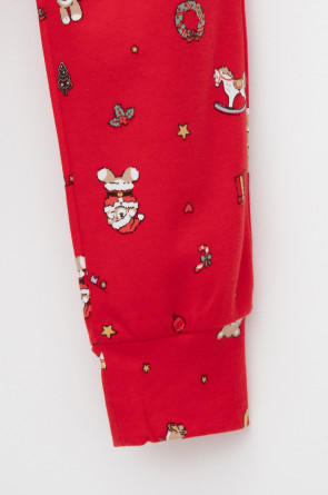 Трикотажный пижамный комплект из натурального хлопка. У джемпера длинные втачные рукава с мягкими манжетами. Брюки с удобным поясом на резинке и эластичными манжетами. Оригинальная набивка и принт выполнены из стойких, гипоаллергенных текстильных красителей. Все трикотажные полотна производятся в соответствии с нормами Швейцарского сертификата ЭкоТекс.