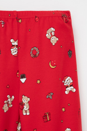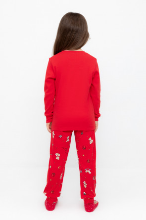 Трикотажный пижамный комплект из натурального хлопка. У джемпера длинные втачные рукава с мягкими манжетами. Брюки с удобным поясом на резинке и эластичными манжетами. Оригинальная набивка и принт выполнены из стойких, гипоаллергенных текстильных красителей. Все трикотажные полотна производятся в соответствии с нормами Швейцарского сертификата ЭкоТекс.