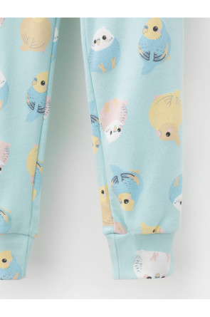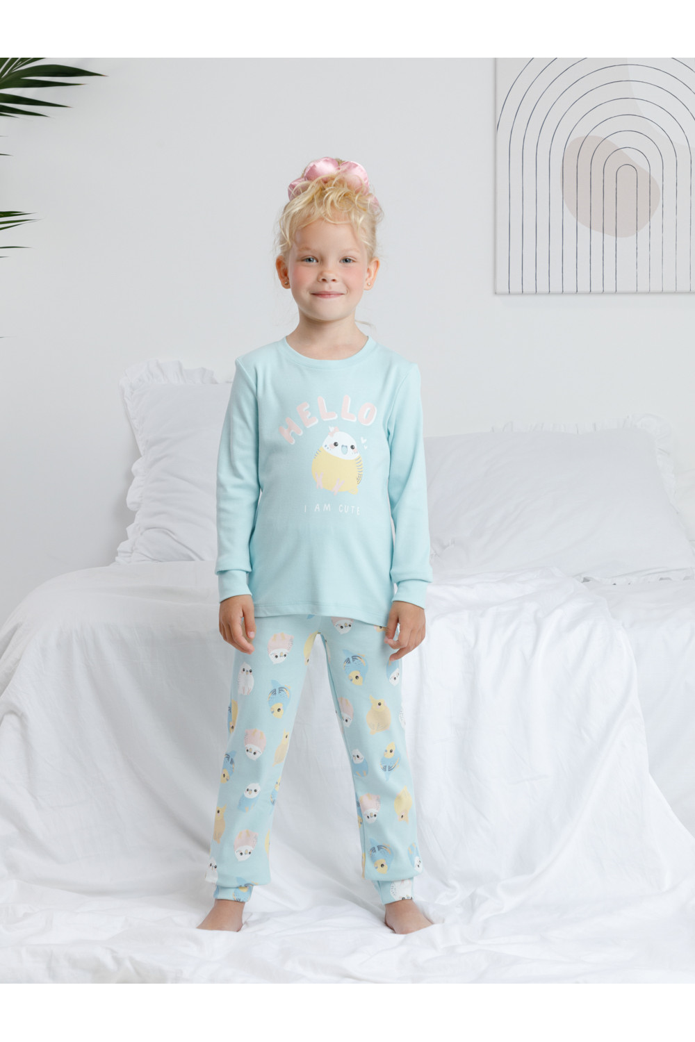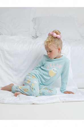Трикотажная пижама из натурального хлопка. Джемпер с длинными втачными рукавами и брюки с эластичной резинкой в поясе. Мягкие манжеты на рукавах и по низу брюк. Оригинальная набивка и принт выполнены из стойких текстильных гипоаллергенных красителей. Изделие сохраняет цвет и форму после многократных стирок. Все трикотажные полотна производятся в соответсвии с нормами швейцарского сертификата ЭкоТекс.