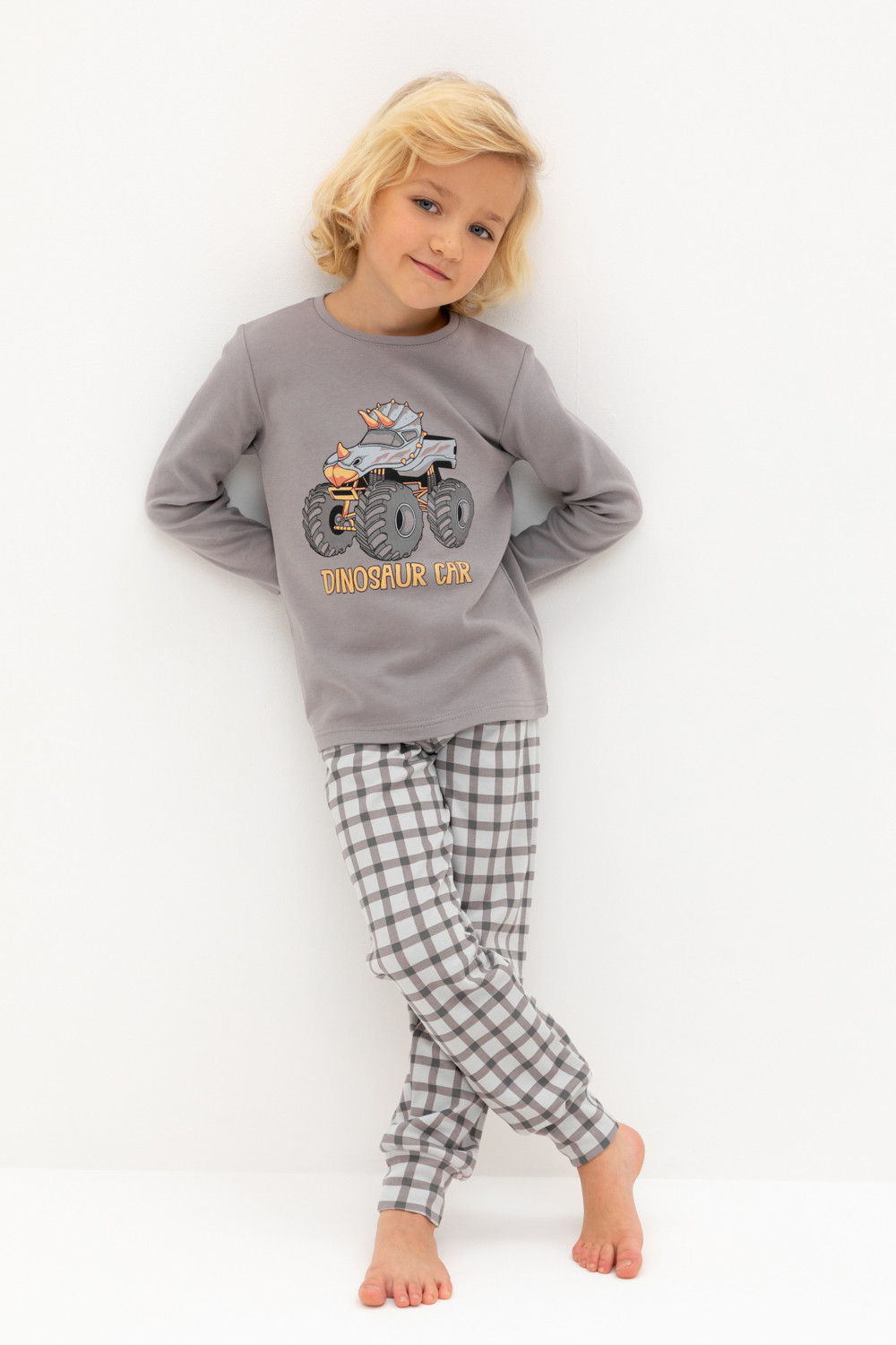 Трикотажная пижама из натурального хлопка. Джемпер с длинными втачными рукавами и брюки с эластичной резинкой в поясе. Мягкие манжеты на рукавах и по низу брюк. Оригинальная набивка и принт выполнены из стойких текстильных гипоаллергенных красителей. Изделие сохраняет цвет и форму после многократных стирок. Все трикотажные полотна производятся в соответсвии с нормами швейцарского сертификата ЭкоТекс.