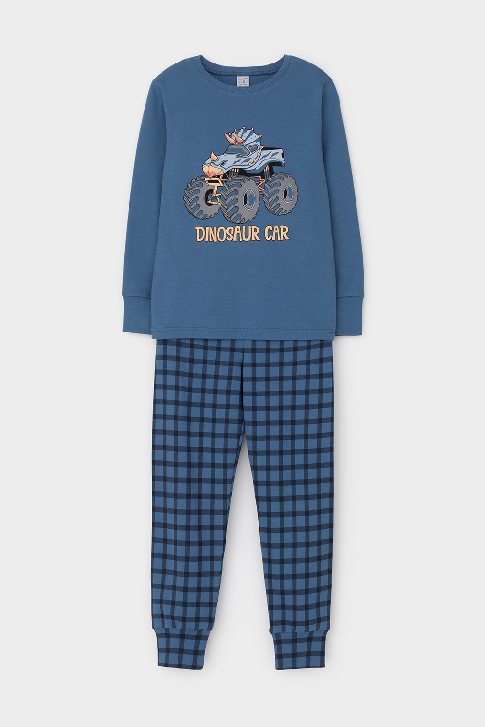 Трикотажная пижама из натурального хлопка. Джемпер с длинными втачными рукавами и брюки с эластичной резинкой в поясе. Мягкие манжеты на рукавах и по низу брюк. Оригинальная набивка и принт выполнены из стойких текстильных гипоаллергенных красителей. Изделие сохраняет цвет и форму после многократных стирок. Все трикотажные полотна производятся в соответсвии с нормами швейцарского сертификата ЭкоТекс.