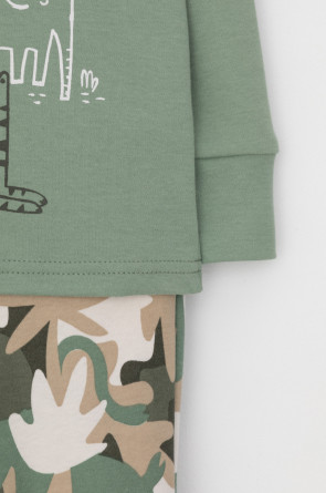 Трикотажная пижама из натурального хлопка. Джемпер с длинными рукавами с эластичными манжетами. У брюк эластичный пояс на резинке. Оригинальная набивка и принт выполнены из стойких, гипоаллергенных текстильных красителей. Пижама сохраняет цвет и форму после многократных стирок. Все трикотажные полотна производятся в соответствии с нормами Швейцарского сертификата ЭкоТекс.