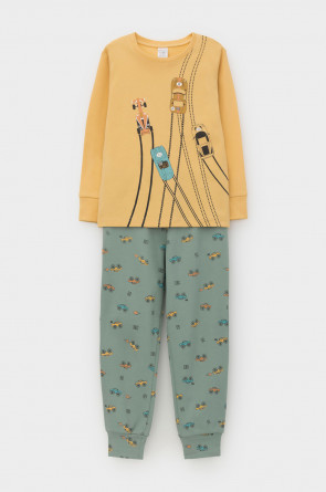 Трикотажная пижама из натурального хлопка. Джемпер с длинными рукавами с эластичными манжетами. У брюк эластичный пояс на резинке. Оригинальная набивка и принт выполнены из стойких, гипоаллергенных текстильных красителей. Пижама сохраняет цвет и форму после многократных стирок. Все трикотажные полотна производятся в соответствии с нормами Швейцарского сертификата ЭкоТекс.