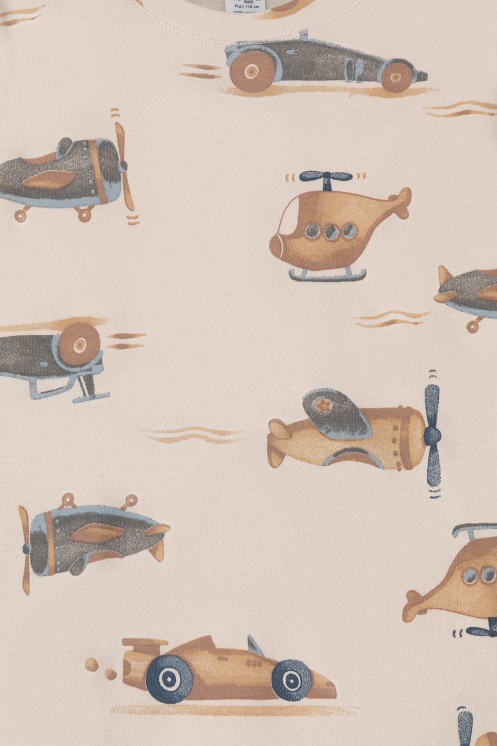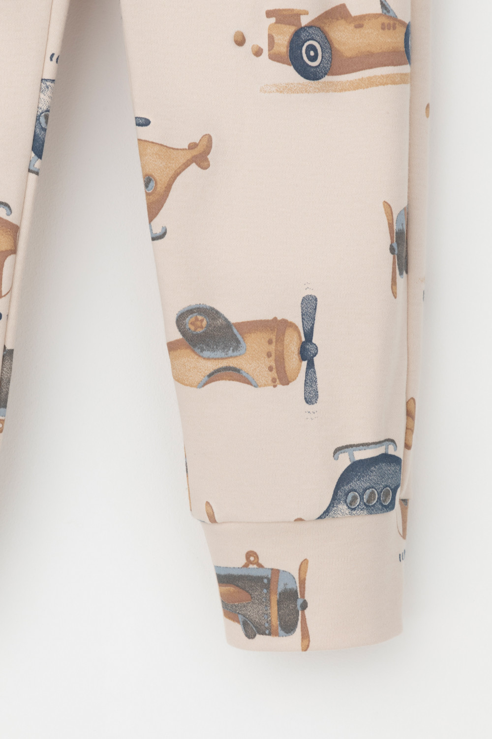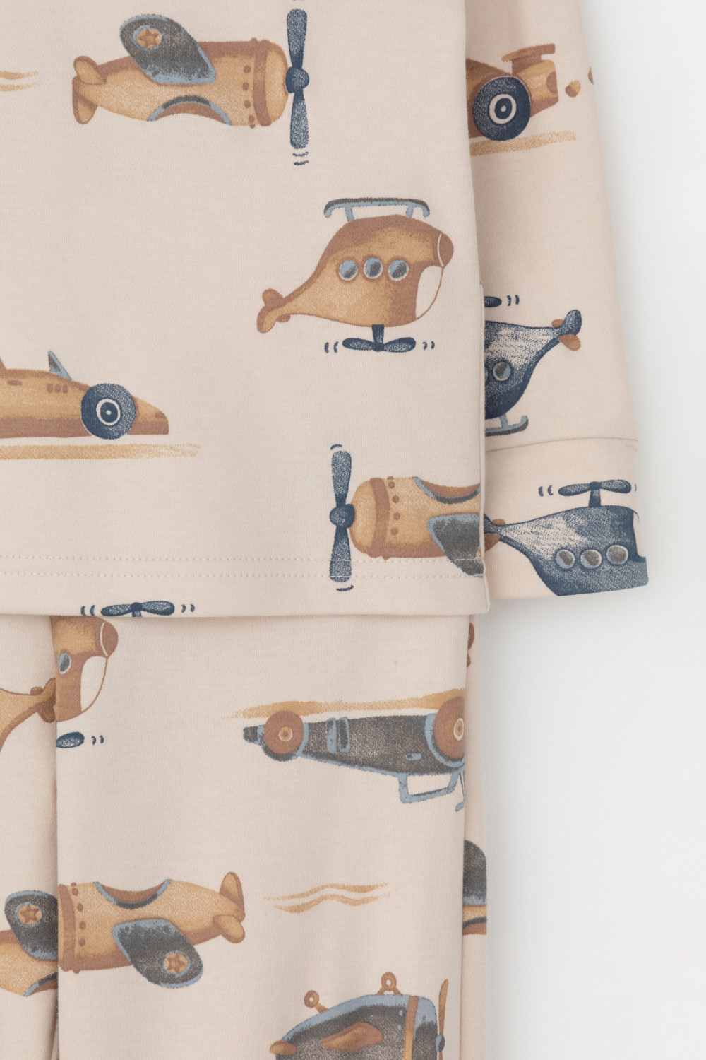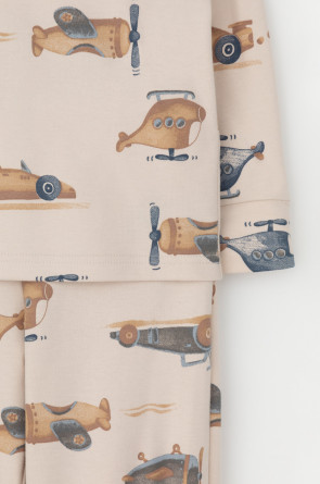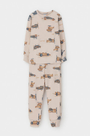 Трикотажная пижама из натурального хлопка. Джемпер с длинными втачными рукавами и брюки с эластичной резинкой в поясе. Мягкие манжеты на рукавах и по низу брюк. Оригинальная набивка выполнена из стойких текстильных гипоаллергенных красителей. Изделие сохраняет цвет и форму после многократных стирок. Все трикотажные полотна производятся в соответствии с нормами швейцарского сертификата ЭкоТекс.