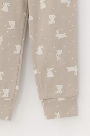Трикотажная пижама из натурального хлопка. Джемпер с длинными втачными рукавами. У брюк в комплекте мягкий, эластичный пояс на резинке. Оригинальная набивка выполнена из стойких, гипоаллергенных текстильных красителей. Комплект сохраняет цвет и форму после многократных стирок. Все трикотажные полотна производятся в соответсвии с нормами Швейцарского сертификата ЭкоТекс.