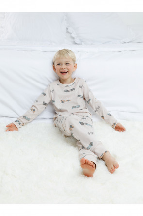 Трикотажная пижама из натурального хлопка. Джемпер с длинными втачными рукавами и брюки с эластичной резинкой в поясе. Мягкие манжеты на рукавах и по низу брюк. Оригинальная набивка выполнена из стойких текстильных гипоаллергенных красителей. Изделие сохраняет цвет и форму после многократных стирок. Все трикотажные полотна производятся в соответствии с нормами швейцарского сертификата ЭкоТекс.