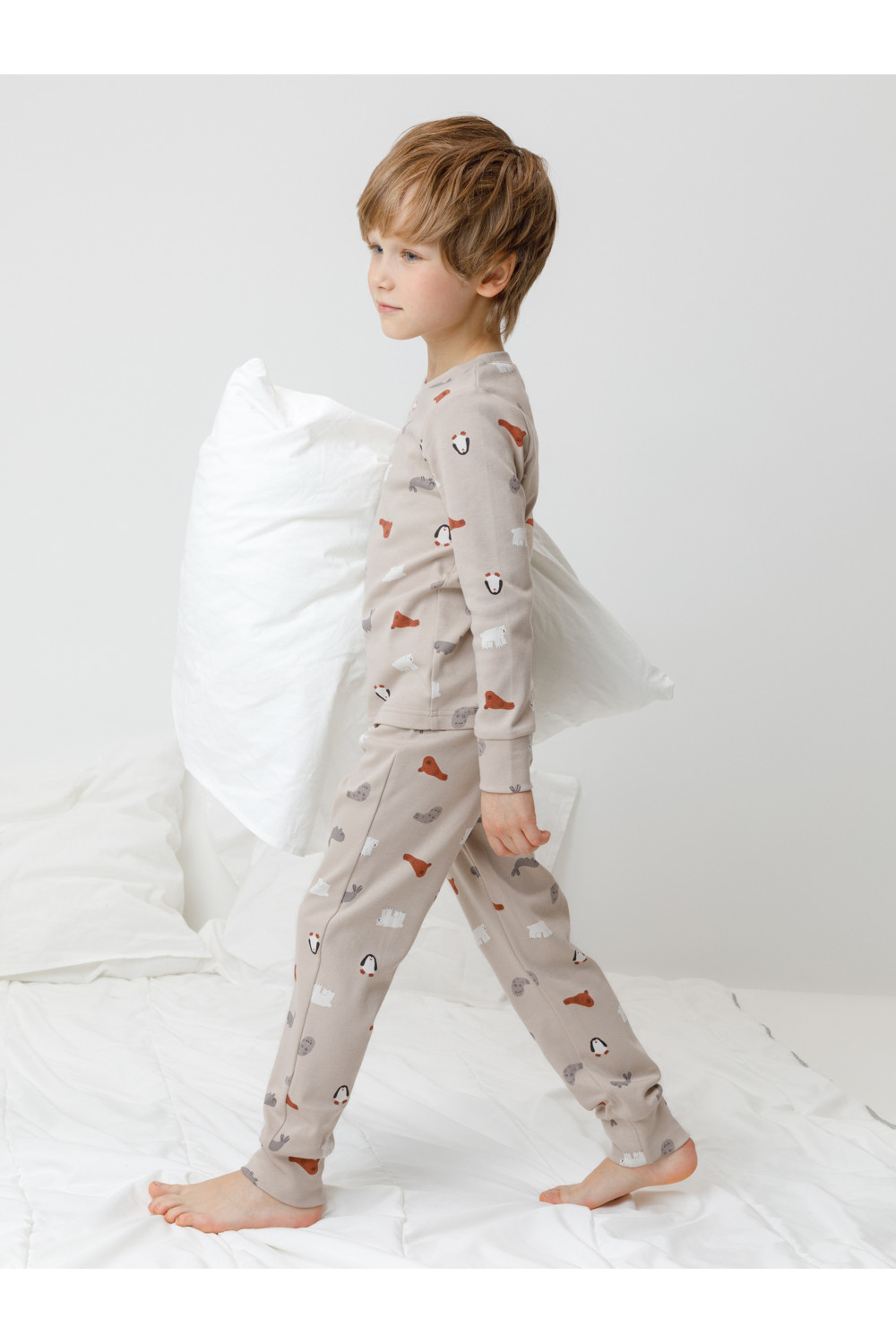 Трикотажная пижама из натурального хлопка. Джемпер с длинными втачными рукавами и брюки с эластичной резинкой в поясе. Мягкие манжеты на рукавах и по низу брюк. Оригинальная набивка выполнена из стойких текстильных гипоаллергенных красителей. Изделие сохраняет цвет и форму после многократных стирок. Все трикотажные полотна производятся в соответствии с нормами швейцарского сертификата ЭкоТекс.