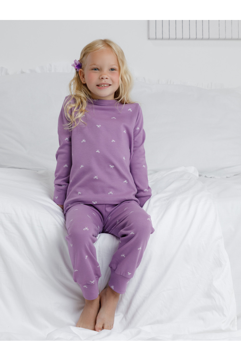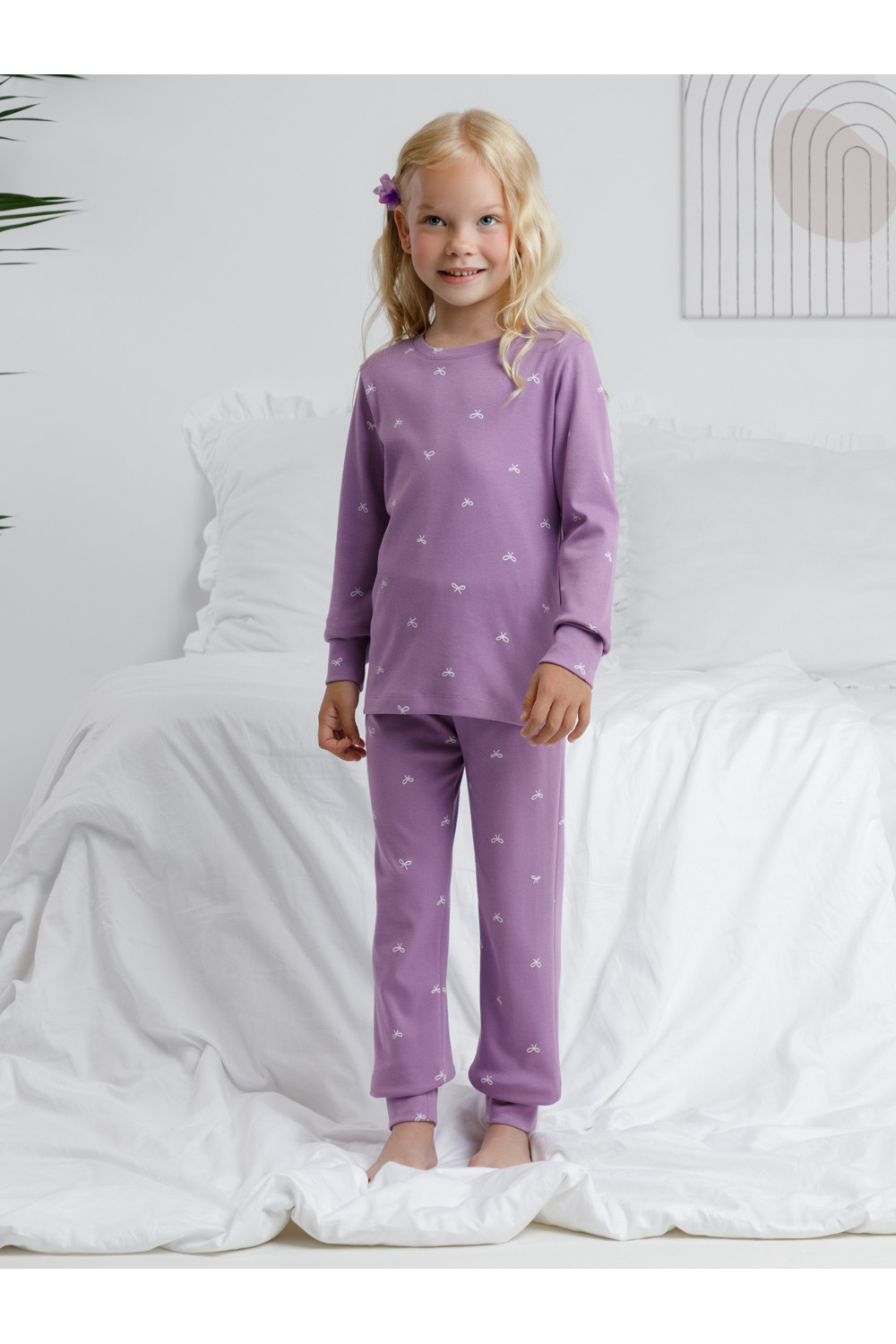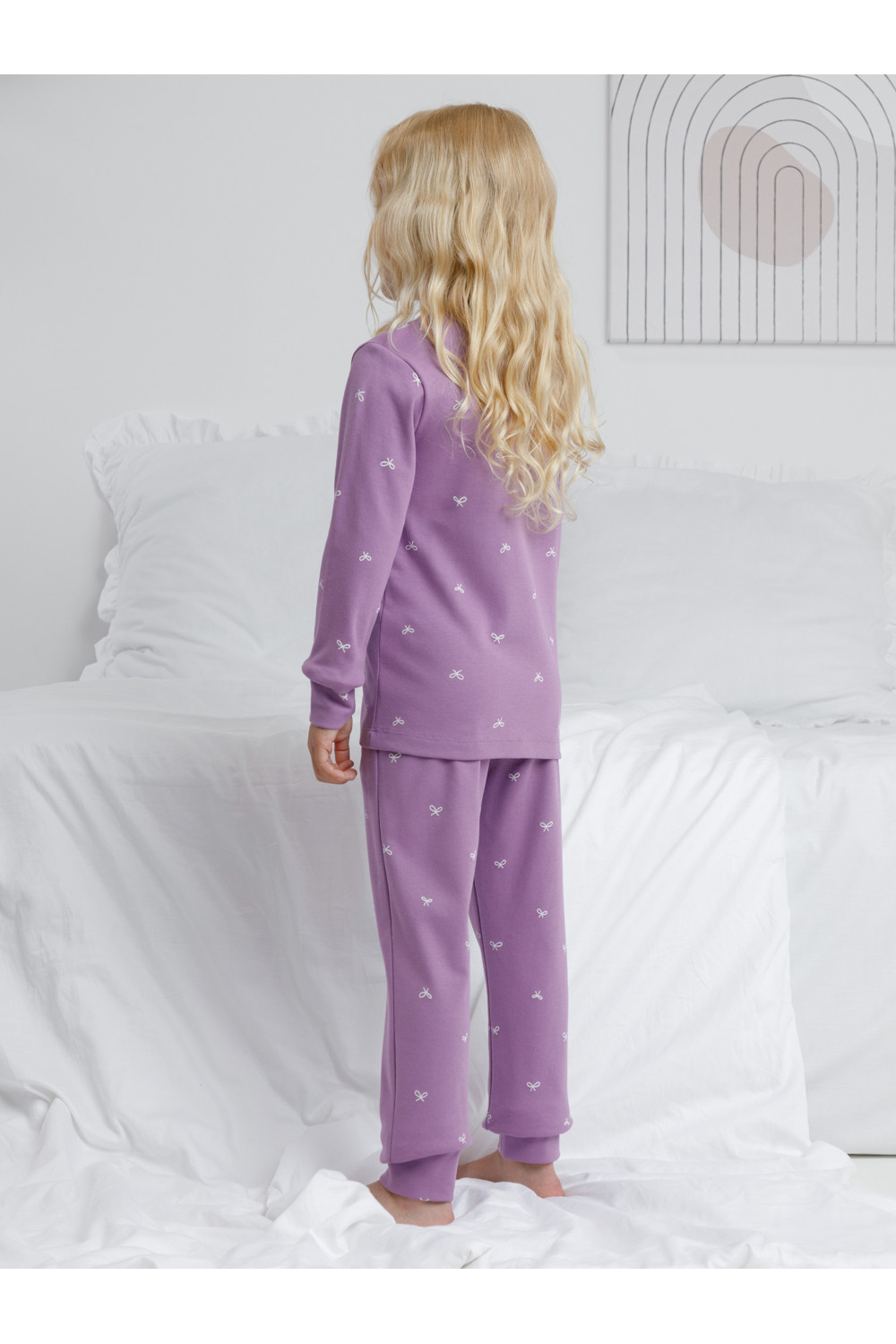 Трикотажная пижама из натурального хлопка. Джемпер с длинными втачными рукавами и брюки с эластичной резинкой в поясе. Мягкие манжеты на рукавах и по низу брюк. Оригинальная набивка выполнена из стойких текстильных гипоаллергенных красителей. Изделие сохраняет цвет и форму после многократных стирок. Все трикотажные полотна производятся в соответствии с нормами швейцарского сертификата ЭкоТекс.