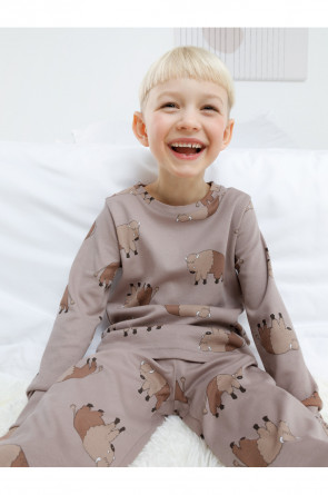Трикотажная пижама из натурального хлопка. Джемпер с длинными втачными рукавами и брюки с эластичной резинкой в поясе. Мягкие манжеты на рукавах и по низу брюк. Оригинальная набивка выполнена из стойких текстильных гипоаллергенных красителей. Изделие сохраняет цвет и форму после многократных стирок. Все трикотажные полотна производятся в соответствии с нормами швейцарского сертификата ЭкоТекс.