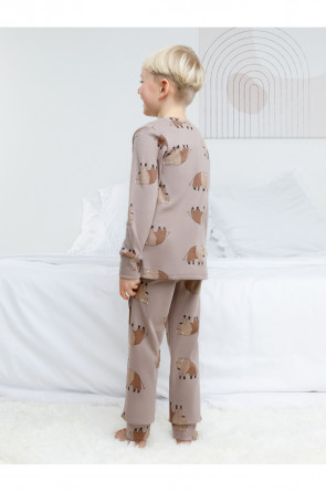 Трикотажная пижама из натурального хлопка. Джемпер с длинными втачными рукавами и брюки с эластичной резинкой в поясе. Мягкие манжеты на рукавах и по низу брюк. Оригинальная набивка выполнена из стойких текстильных гипоаллергенных красителей. Изделие сохраняет цвет и форму после многократных стирок. Все трикотажные полотна производятся в соответствии с нормами швейцарского сертификата ЭкоТекс.