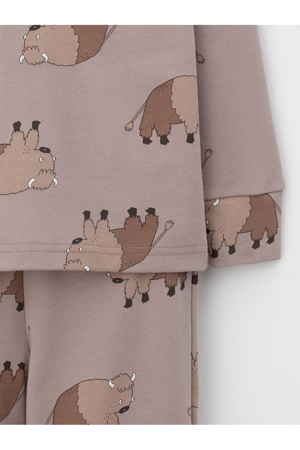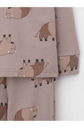 Трикотажная пижама из натурального хлопка. Джемпер с длинными втачными рукавами и брюки с эластичной резинкой в поясе. Мягкие манжеты на рукавах и по низу брюк. Оригинальная набивка выполнена из стойких текстильных гипоаллергенных красителей. Изделие сохраняет цвет и форму после многократных стирок. Все трикотажные полотна производятся в соответствии с нормами швейцарского сертификата ЭкоТекс.