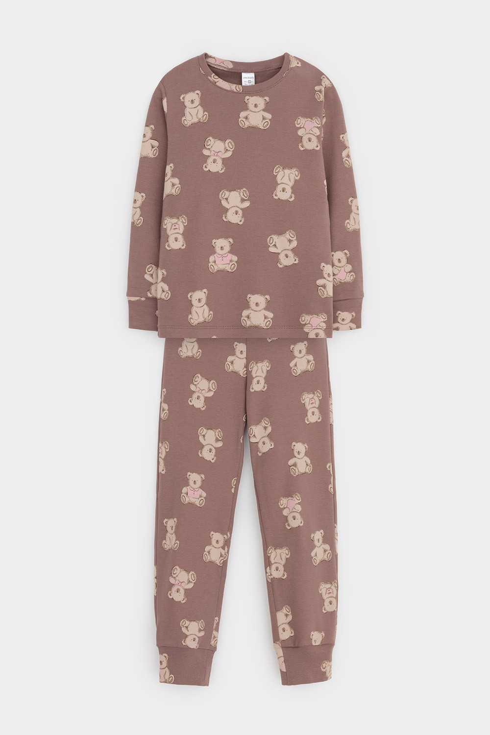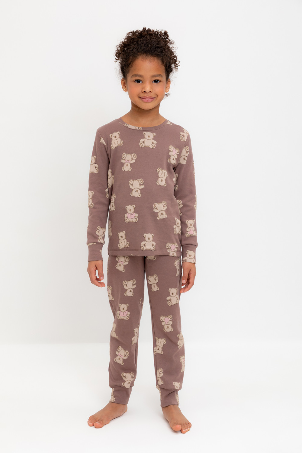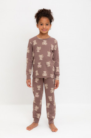Трикотажная пижама из натурального хлопка. Джемпер с длинными втачными рукавами с принтом. У брюк в комплекте мягкий, эластичный пояс на резинке. Оригинальная набивка выполнена из стойких, гипоаллергенных текстильных красителей. Комплект сохраняет цвет и форму после многократных стирок. Все трикотажные полотна производятся в соответсвии с нормами Швейцарского сертификата ЭкоТекс.