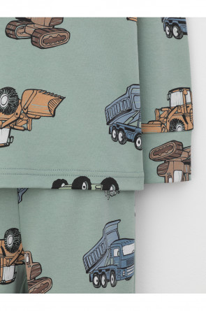 Трикотажная пижама из натурального хлопка. Джемпер с длинными втачными рукавами и брюки с эластичной резинкой в поясе. Мягкие манжеты на рукавах и по низу брюк. Оригинальная набивка выполнена из стойких текстильных гипоаллергенных красителей. Изделие сохраняет цвет и форму после многократных стирок. Все трикотажные полотна производятся в соответствии с нормами швейцарского сертификата ЭкоТекс.