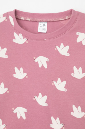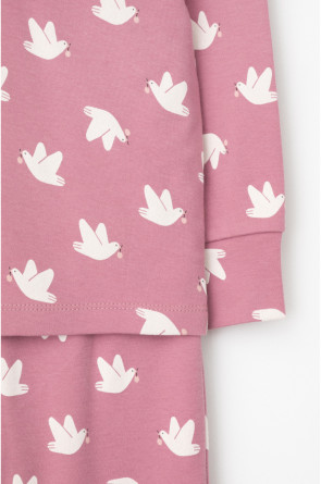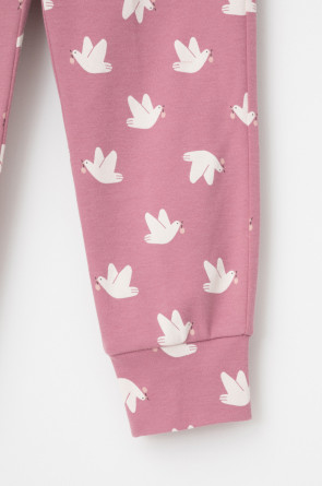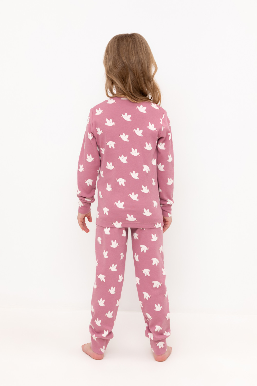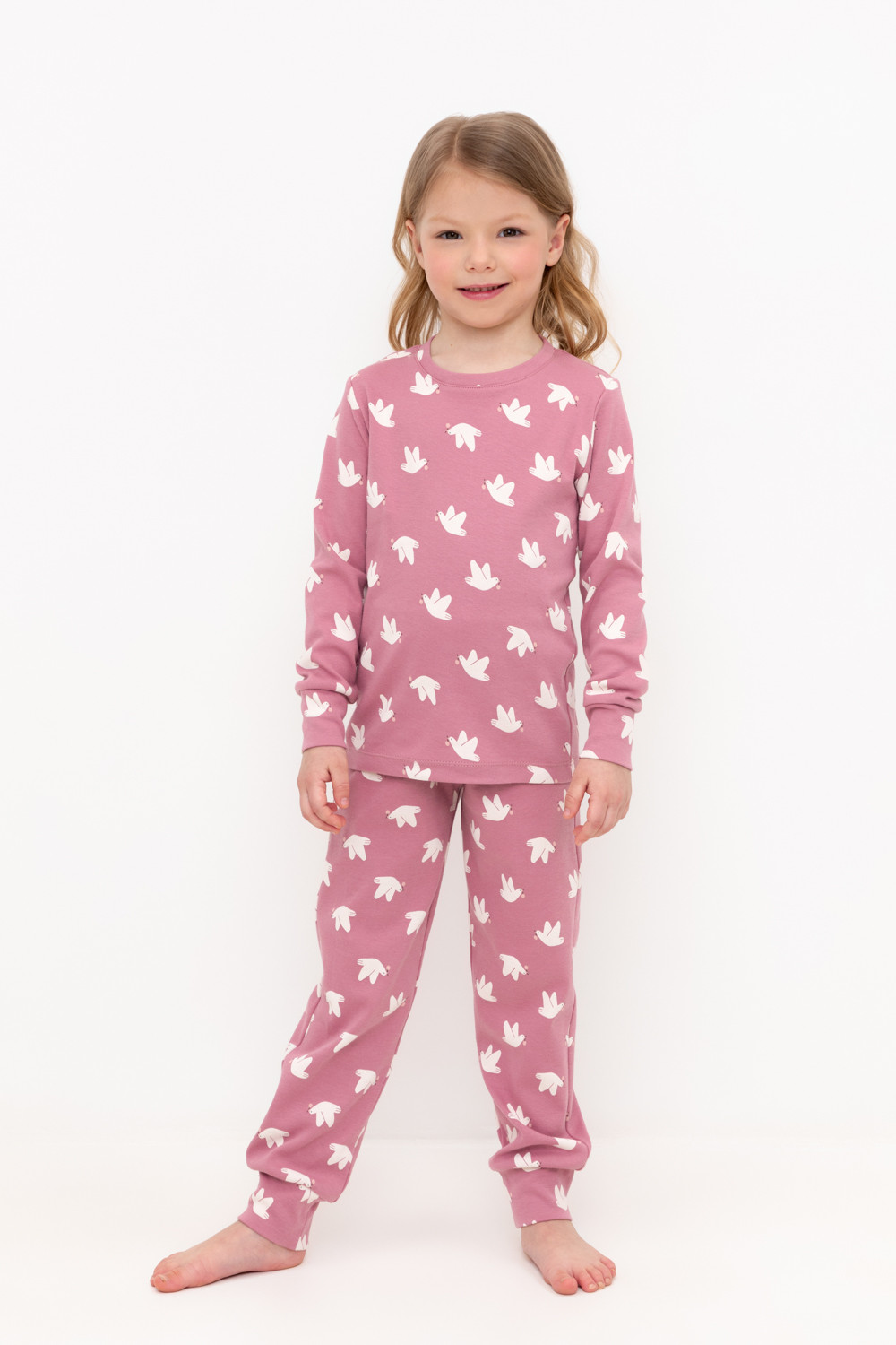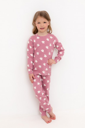 Трикотажная пижама из натурального хлопка. Джемпер с длинными втачными рукавами. У брюк в комплекте мягкий, эластичный пояс на резинке. Оригинальная набивка выполнена из стойких, гипоаллергенных текстильных красителей. Комплект сохраняет цвет и форму после многократных стирок. Все трикотажные полотна производятся в соответсвии с нормами Швейцарского сертификата ЭкоТекс.