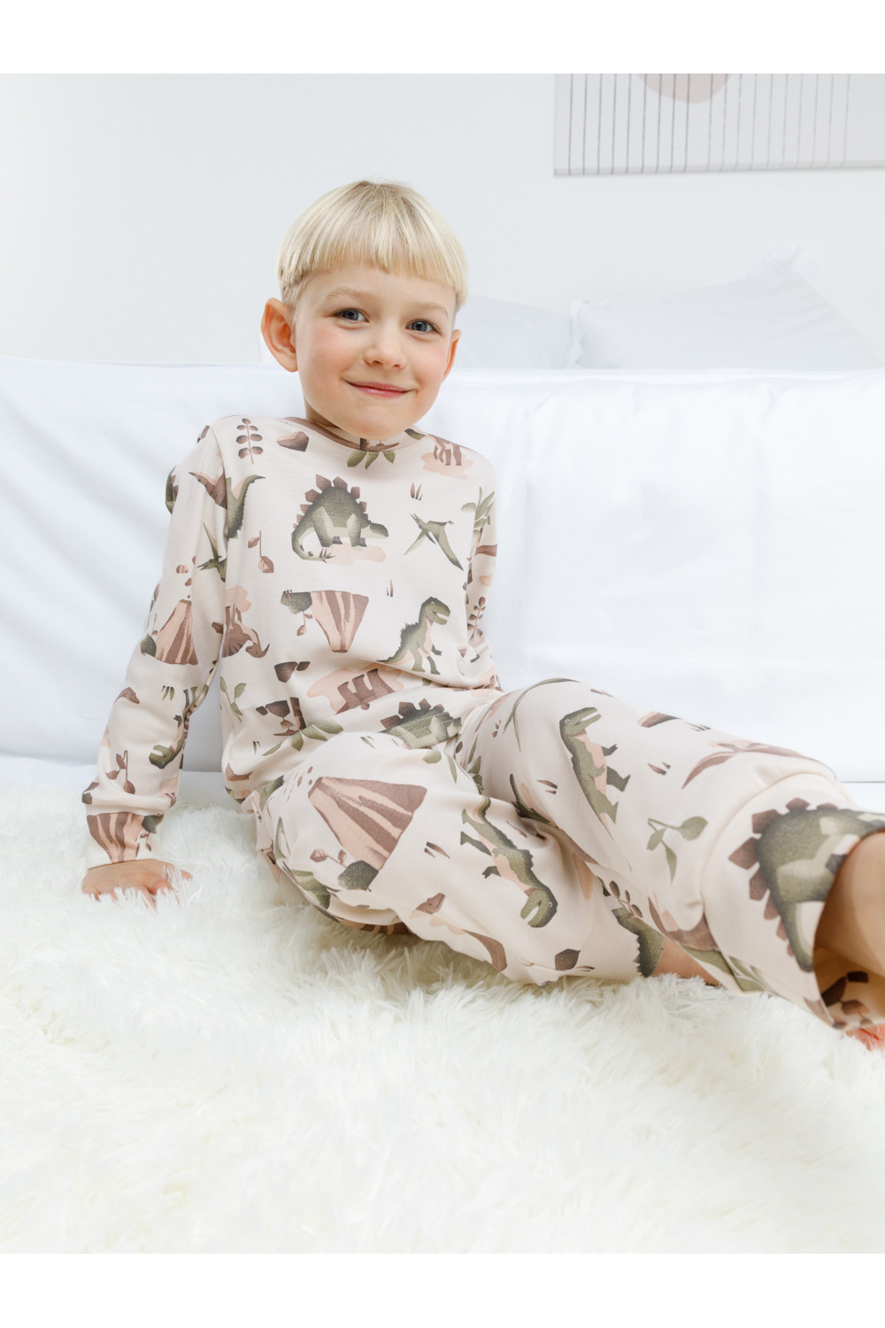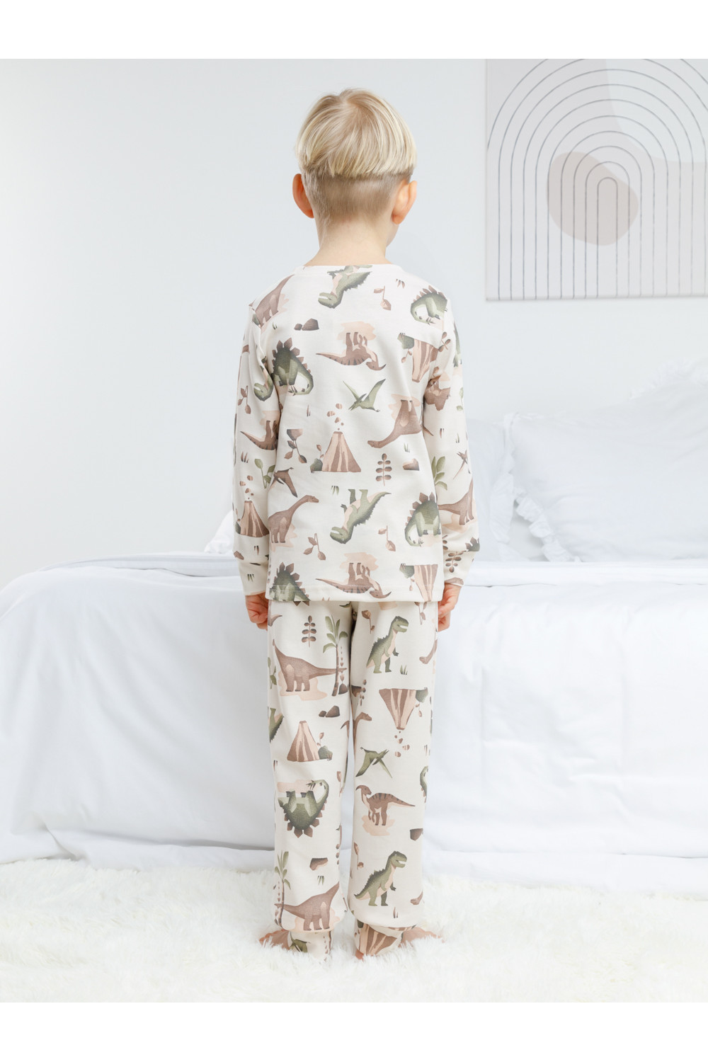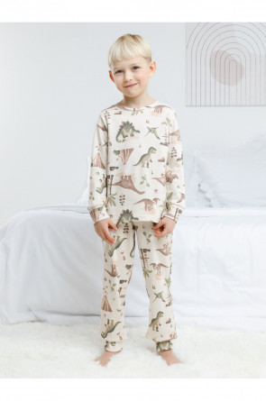 Трикотажная пижама из натурального хлопка. Джемпер с длинными втачными рукавами и брюки с эластичной резинкой в поясе. Мягкие манжеты на рукавах и по низу брюк. Оригинальная набивка выполнена из стойких текстильных гипоаллергенных красителей. Изделие сохраняет цвет и форму после многократных стирок. Все трикотажные полотна производятся в соответствии с нормами швейцарского сертификата ЭкоТекс.