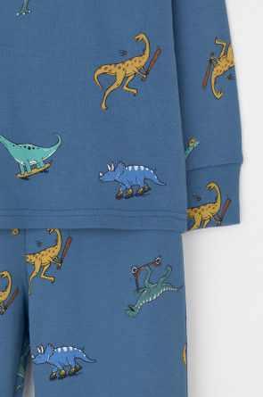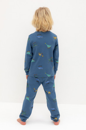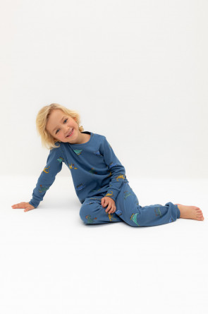 Трикотажная пижама из натурального хлопка. Джемпер с длинными втачными рукавами и брюки с эластичной резинкой в поясе. Мягкие манжеты на рукавах и по низу брюк. Оригинальная набивка выполнена из стойких текстильных гипоаллергенных красителей. Изделие сохраняет цвет и форму после многократных стирок. Все трикотажные полотна производятся в соответствии с нормами швейцарского сертификата ЭкоТекс.