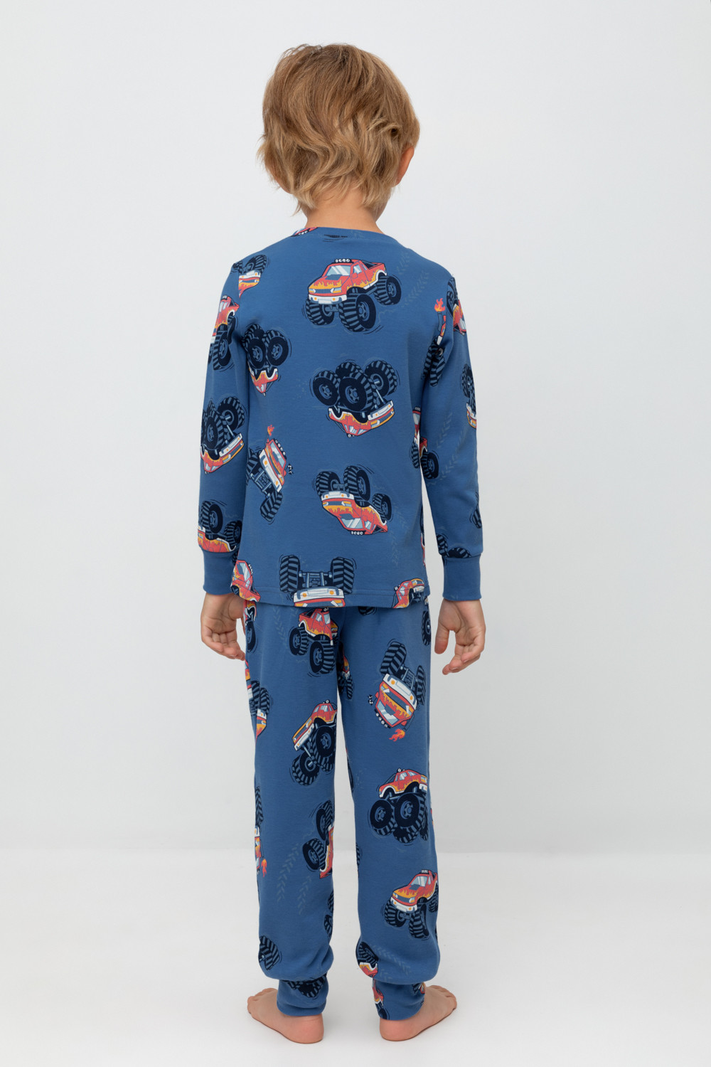 Трикотажная пижама из натурального хлопка. Джемпер с длинными рукавами с эластичными манжетами. У брюк эластичный пояс на резинке. Оригинальная набивка выполнена из стойких, гипоаллергенных текстильных красителей. Пижама сохраняет цвет и форму после многократных стирок. Все трикотажные полотна производятся в соответствии с нормами Швейцарского сертификата ЭкоТекс.