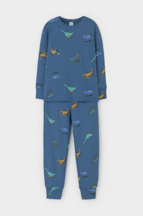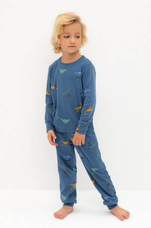 Трикотажная пижама из натурального хлопка. Джемпер с длинными втачными рукавами и брюки с эластичной резинкой в поясе. Мягкие манжеты на рукавах и по низу брюк. Оригинальная набивка выполнена из стойких текстильных гипоаллергенных красителей. Изделие сохраняет цвет и форму после многократных стирок. Все трикотажные полотна производятся в соответствии с нормами швейцарского сертификата ЭкоТекс.