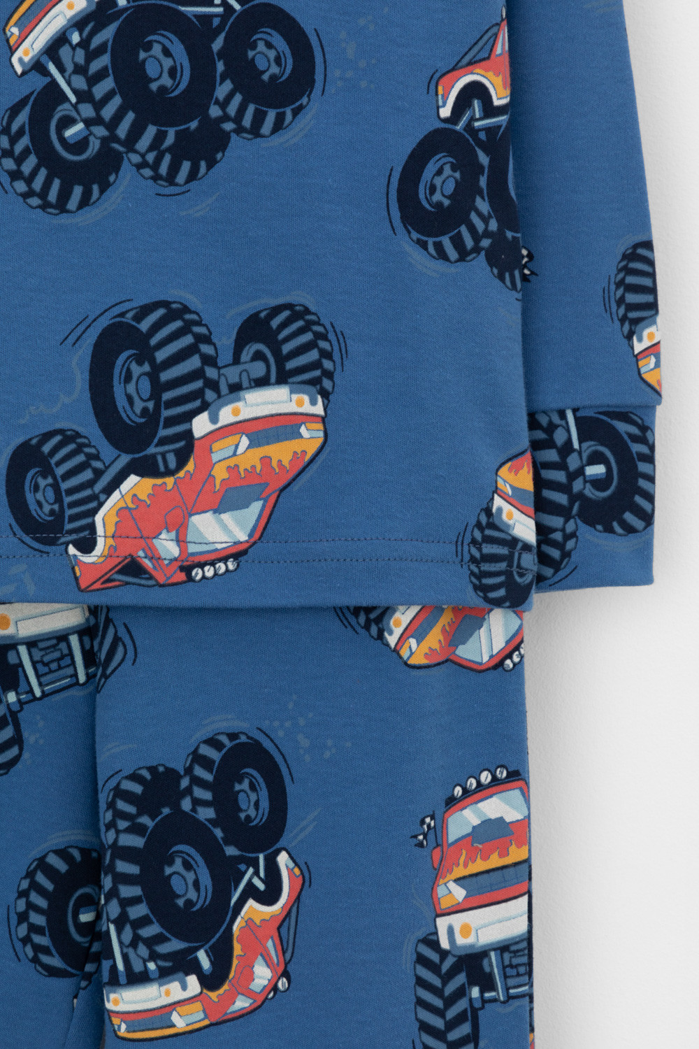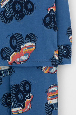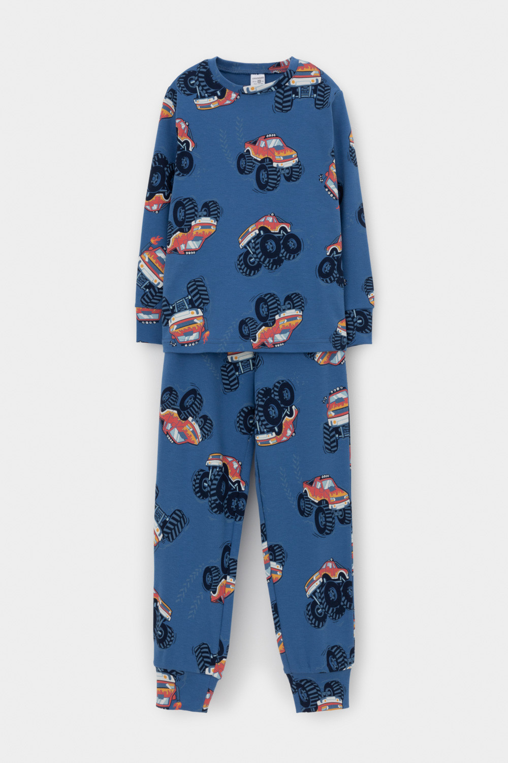 Трикотажная пижама из натурального хлопка. Джемпер с длинными рукавами с эластичными манжетами. У брюк эластичный пояс на резинке. Оригинальная набивка выполнена из стойких, гипоаллергенных текстильных красителей. Пижама сохраняет цвет и форму после многократных стирок. Все трикотажные полотна производятся в соответствии с нормами Швейцарского сертификата ЭкоТекс.