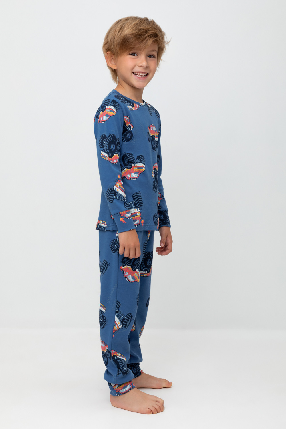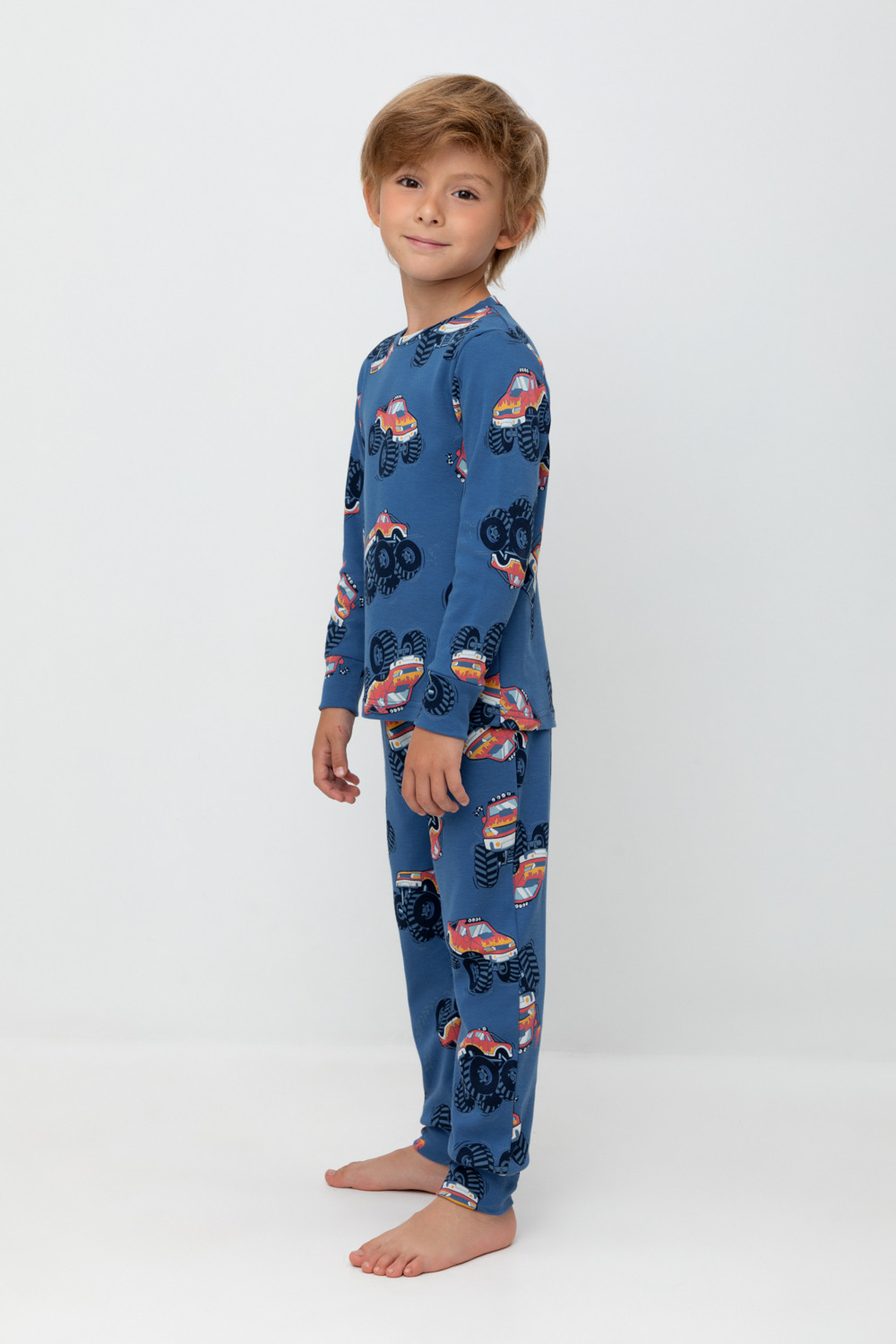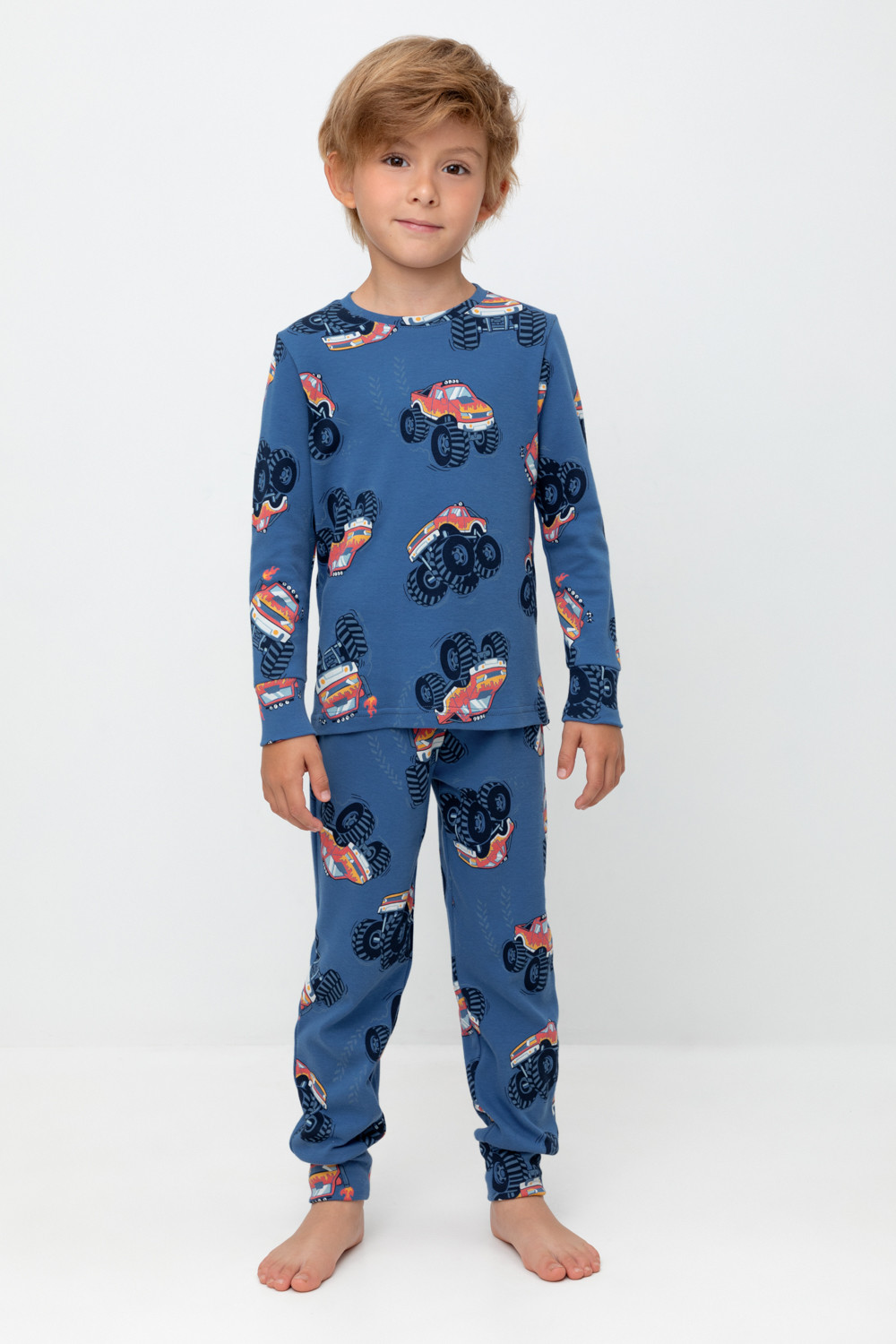 Трикотажная пижама из натурального хлопка. Джемпер с длинными рукавами с эластичными манжетами. У брюк эластичный пояс на резинке. Оригинальная набивка выполнена из стойких, гипоаллергенных текстильных красителей. Пижама сохраняет цвет и форму после многократных стирок. Все трикотажные полотна производятся в соответствии с нормами Швейцарского сертификата ЭкоТекс.
