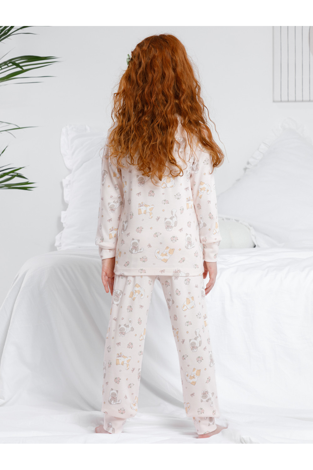 Трикотажная пижама из натурального хлопка. Джемпер с длинными втачными рукавами и брюки с эластичной резинкой в поясе. Мягкие манжеты на рукавах и по низу брюк. Оригинальная набивка выполнена из стойких текстильных гипоаллергенных красителей. Изделие сохраняет цвет и форму после многократных стирок. Все трикотажные полотна производятся в соответствии с нормами швейцарского сертификата ЭкоТекс.