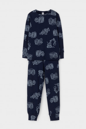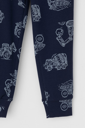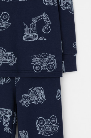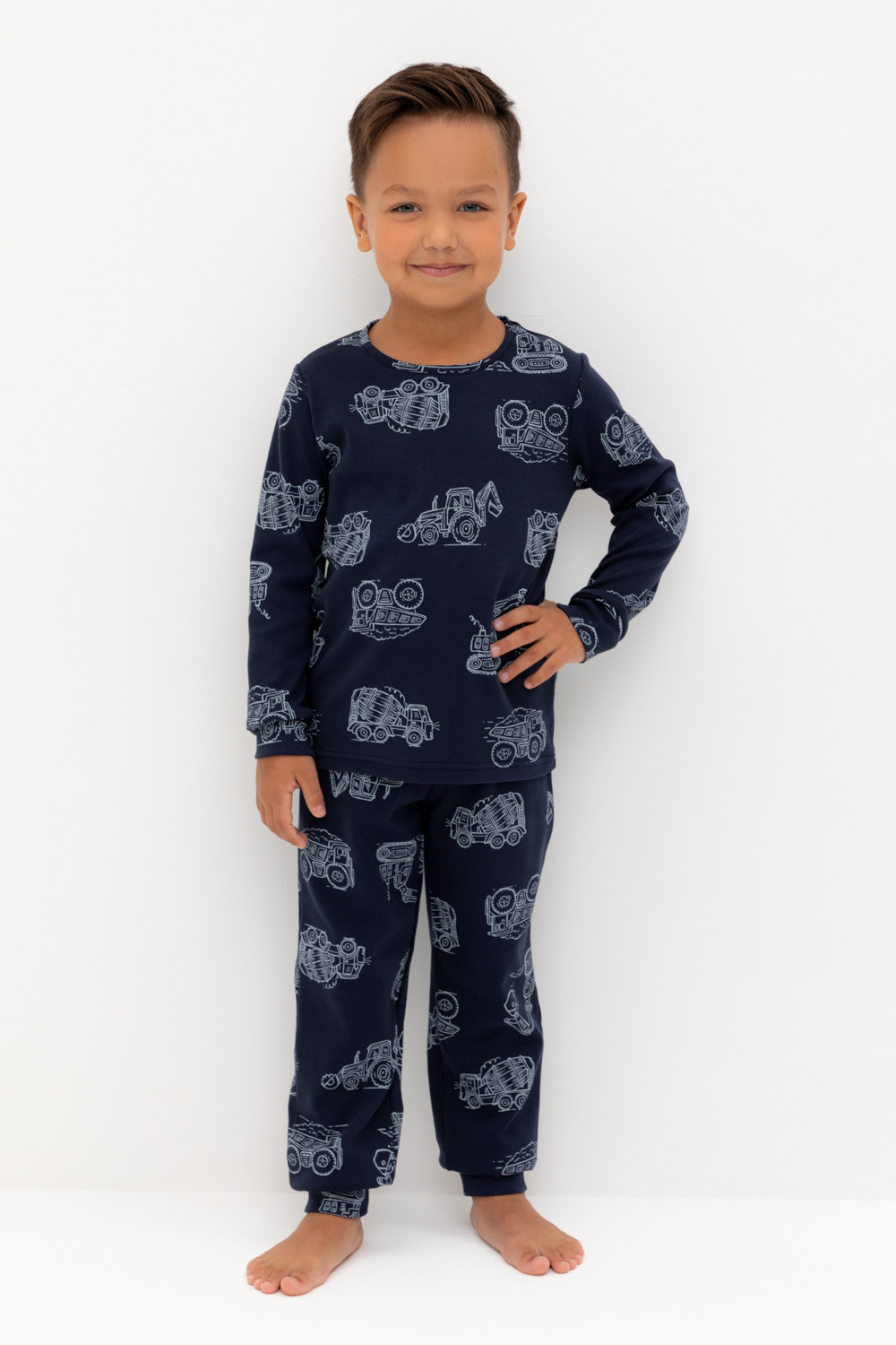 Трикотажная пижама из натурального хлопка. Джемпер с длинными втачными рукавами и брюки с эластичной резинкой в поясе. Мягкие манжеты на рукавах и по низу брюк. Оригинальная набивка выполнена из стойких текстильных гипоаллергенных красителей. Изделие сохраняет цвет и форму после многократных стирок. Все трикотажные полотна производятся в соответствии с нормами швейцарского сертификата ЭкоТекс.