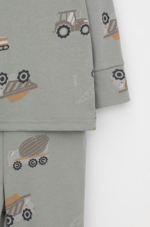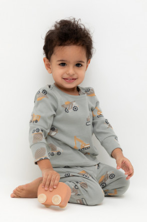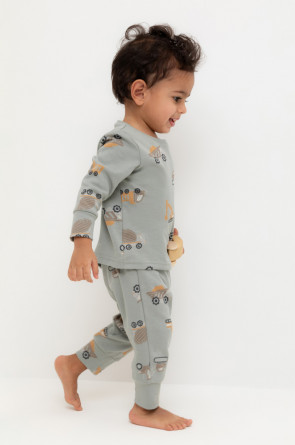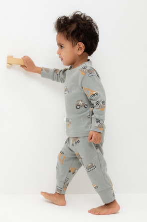 Трикотажная пижама из натурального хлопка. Джемпер с длинными рукавами с эластичными манжетами. У брюк эластичный пояс на резинке. Оригинальная набивка выполнена из стойких, гипоаллергенных текстильных красителей. Пижама сохраняет цвет и форму после многократных стирок. Все трикотажные полотна производятся в соответствии с нормами Швейцарского сертификата ЭкоТекс.