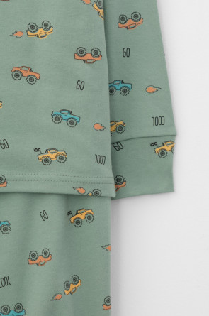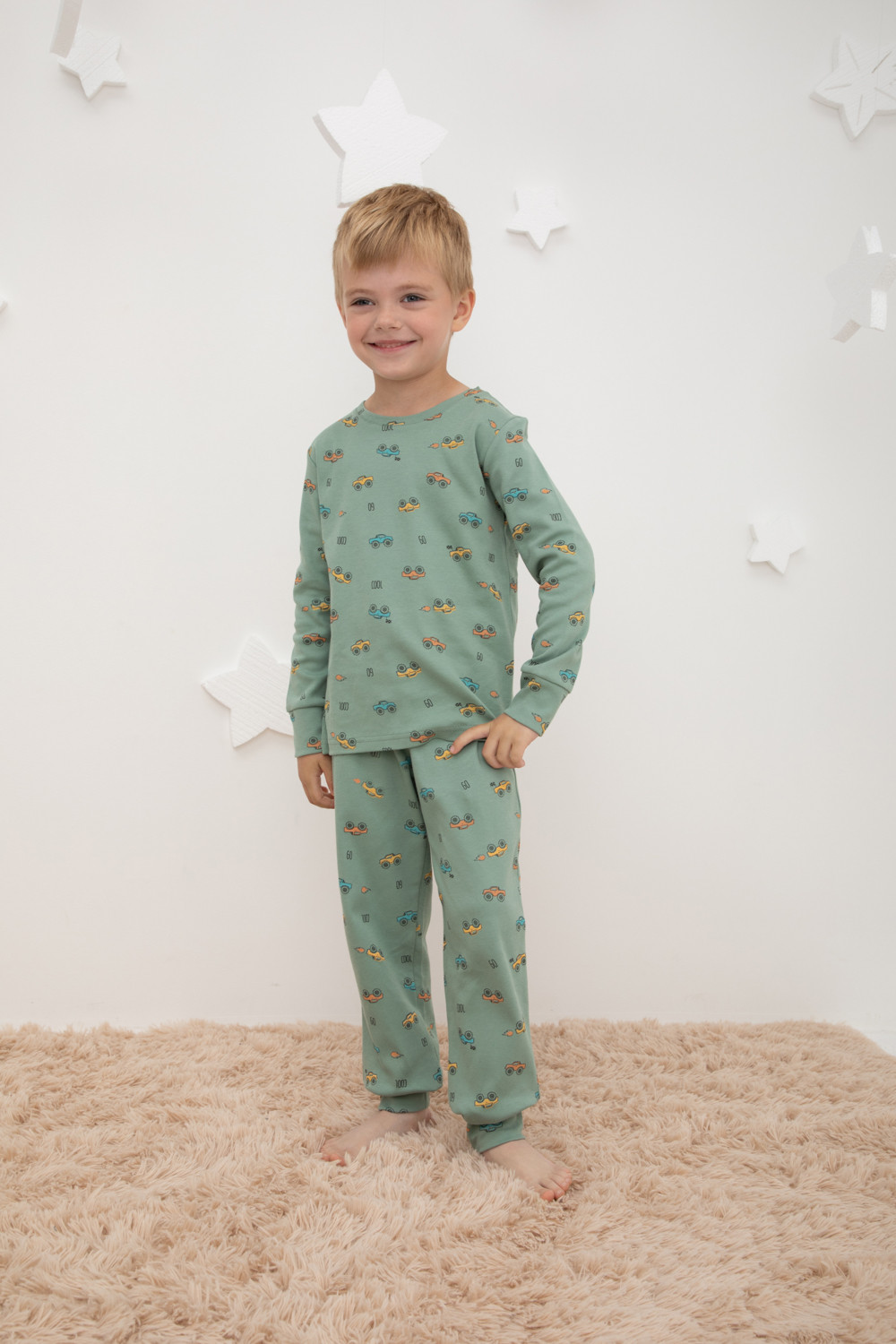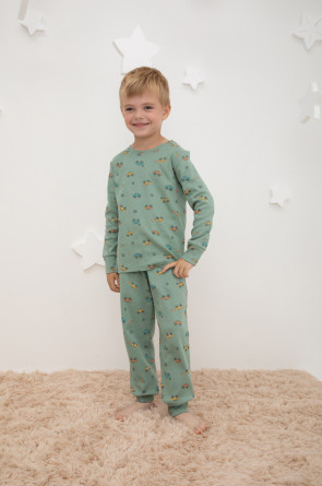 Трикотажная пижама из натурального хлопка. Джемпер с длинными рукавами с эластичными манжетами. У брюк эластичный пояс на резинке. Оригинальная набивка выполнена из стойких, гипоаллергенных текстильных красителей. Пижама сохраняет цвет и форму после многократных стирок. Все трикотажные полотна производятся в соответствии с нормами Швейцарского сертификата ЭкоТекс.