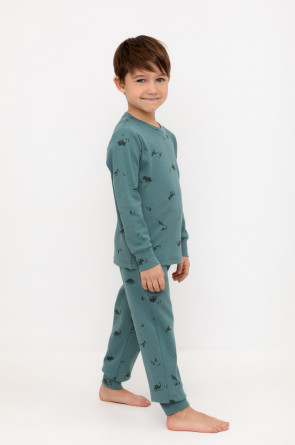 Трикотажная пижама из натурального хлопка. Джемпер с длинными рукавами с эластичными манжетами. У брюк эластичный пояс на резинке. Оригинальная набивка выполнена из стойких, гипоаллергенных текстильных красителей. Пижама сохраняет цвет и форму после многократных стирок. Все трикотажные полотна производятся в соответствии с нормами Швейцарского сертификата ЭкоТекс.
