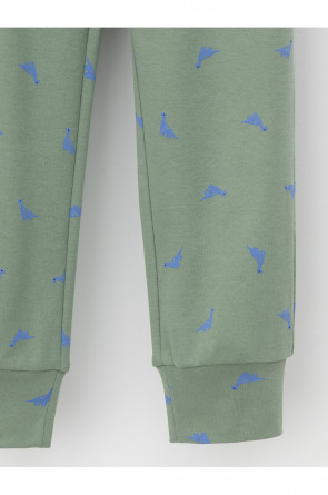 Трикотажная пижама из натурального хлопка. Джемпер с длинными втачными рукавами и брюки с эластичной резинкой в поясе. Мягкие манжеты на рукавах и по низу брюк. Оригинальная набивка выполнена из стойких текстильных гипоаллергенных красителей. Изделие сохраняет цвет и форму после многократных стирок. Все трикотажные полотна производятся в соответствии с нормами швейцарского сертификата ЭкоТекс.
