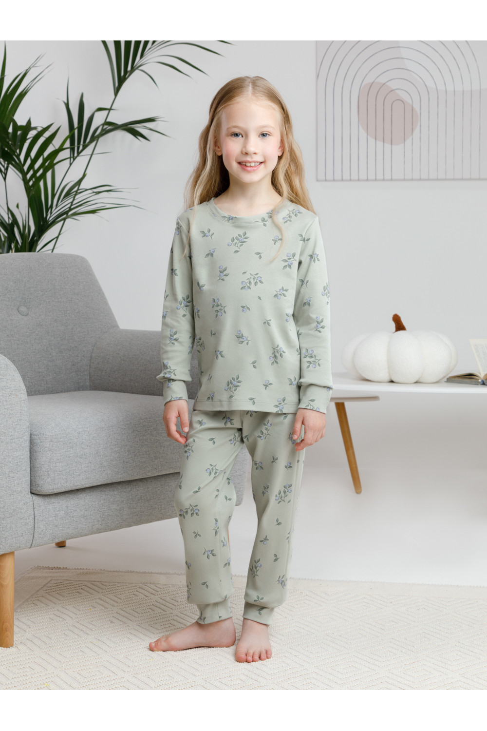 Трикотажная пижама из натурального хлопка. Джемпер с длинными втачными рукавами и брюки с эластичной резинкой в поясе. Мягкие манжеты на рукавах и по низу брюк. Оригинальная набивка выполнена из стойких текстильных гипоаллергенных красителей. Изделие сохраняет цвет и форму после многократных стирок. Все трикотажные полотна производятся в соответствии с нормами швейцарского сертификата ЭкоТекс.