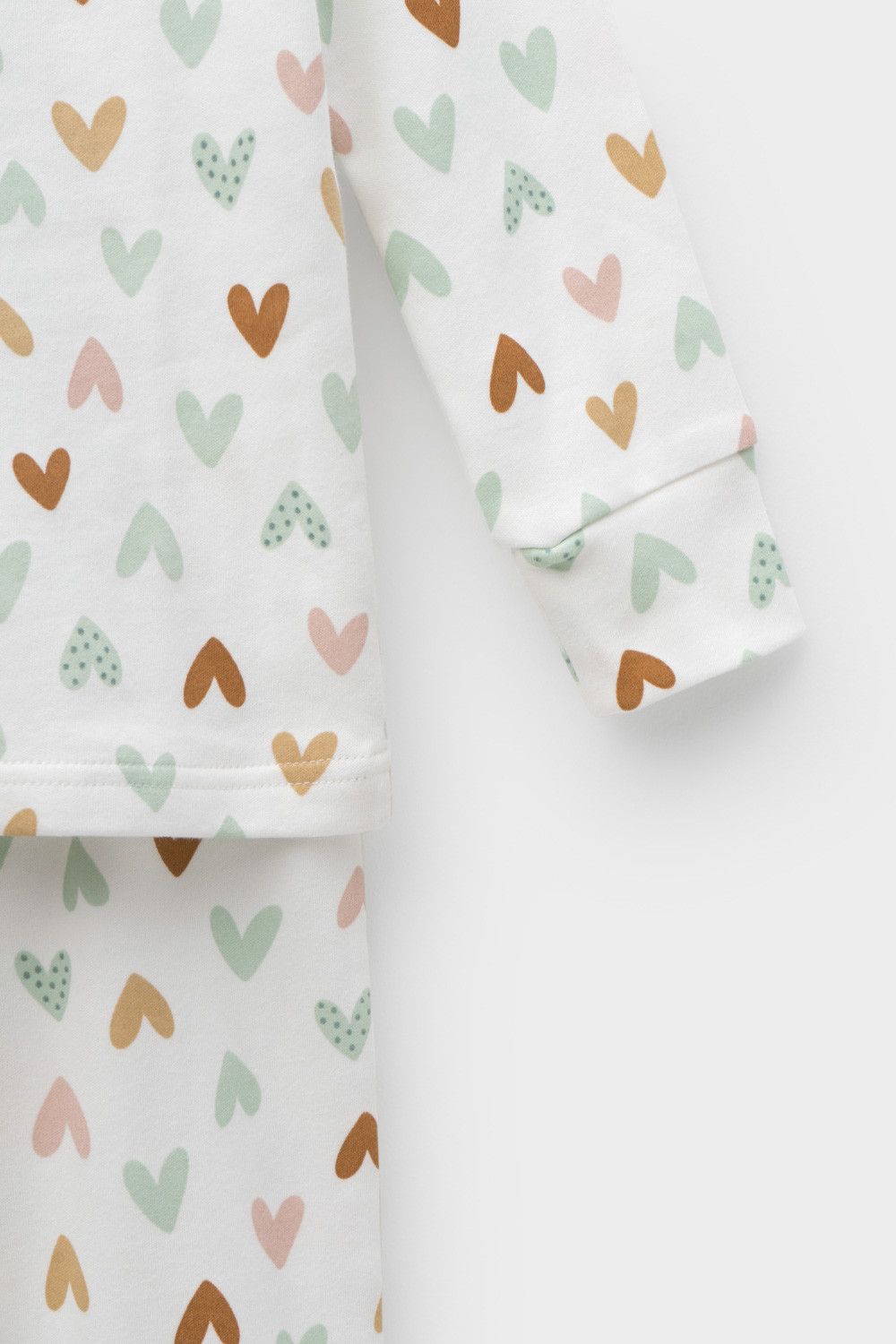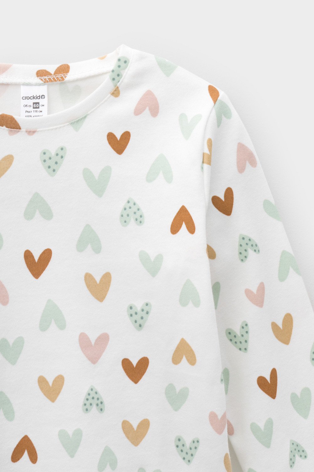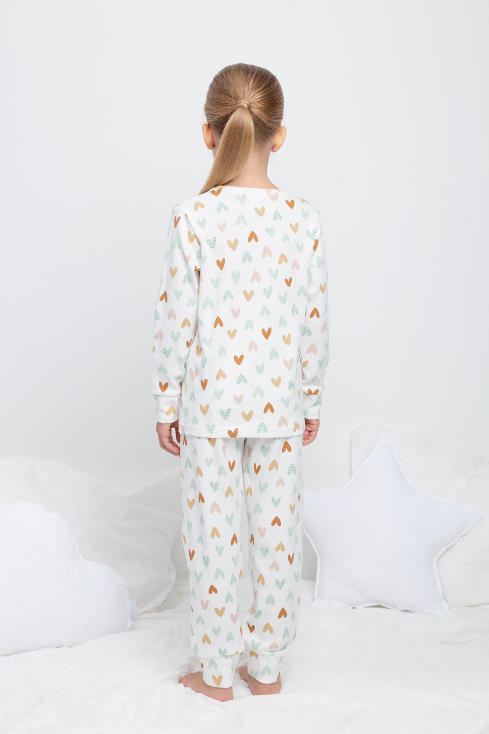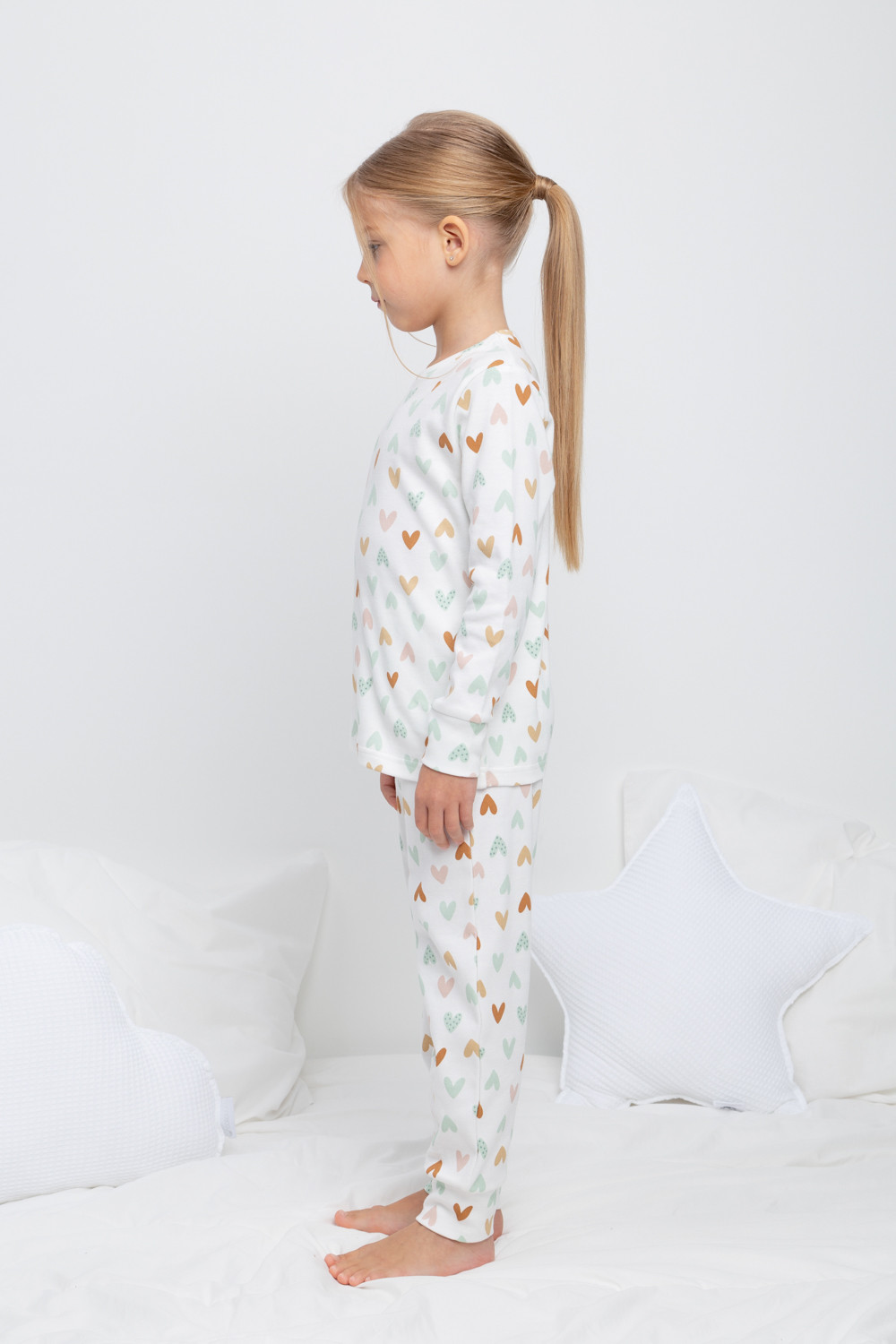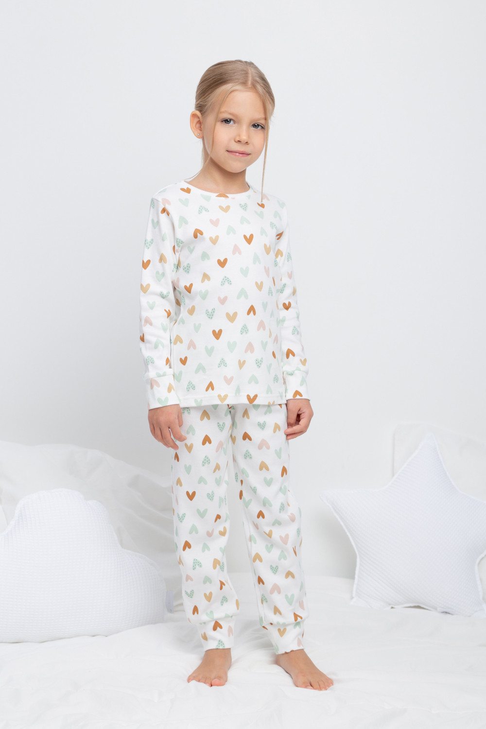Трикотажная пижама из натурального хлопка. Джемпер с длинными втачными рукавами. У брюк в комплекте мягкий, эластичный пояс на резинке. Оригинальная набивка выполнена из стойких, гипоаллергенных текстильных красителей. Комплект сохраняет цвет и форму после многократных стирок. Все трикотажные полотна производятся в соответсвии с нормами Швейцарского сертификата ЭкоТекс.