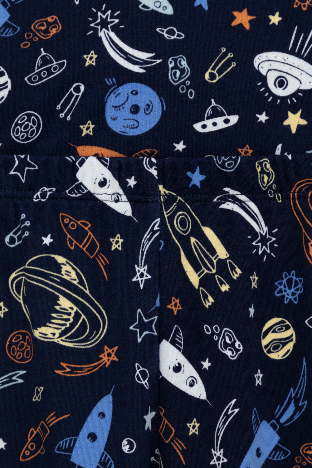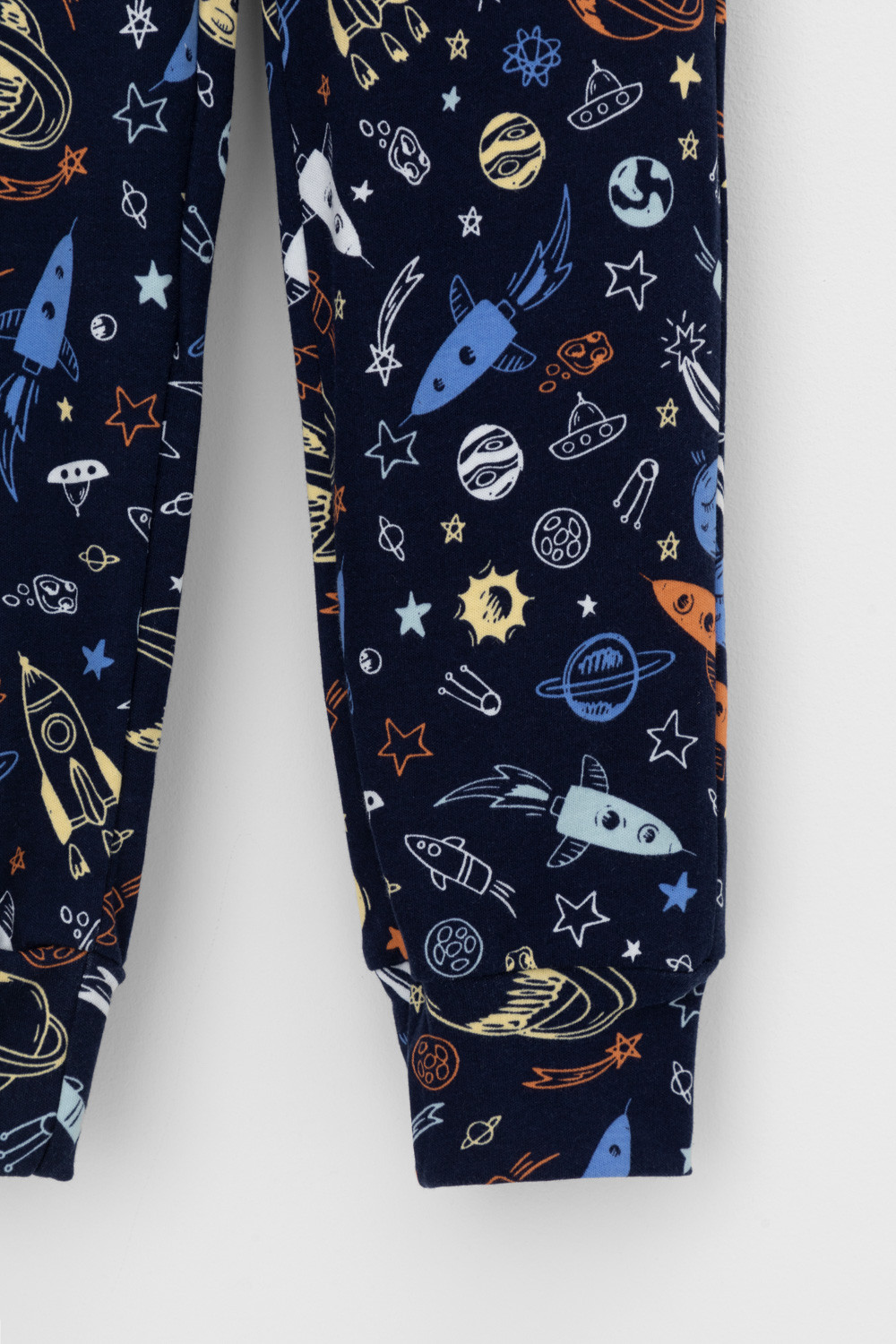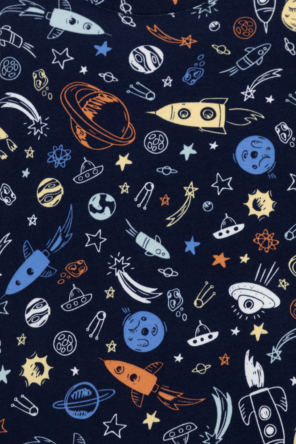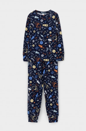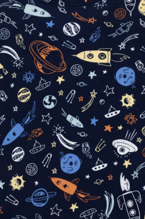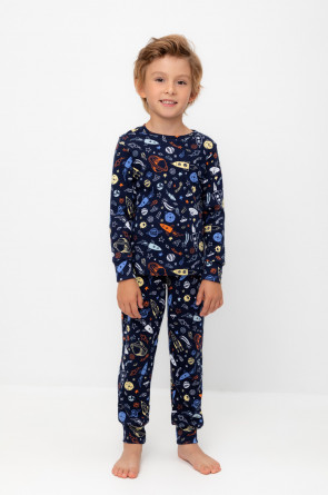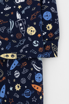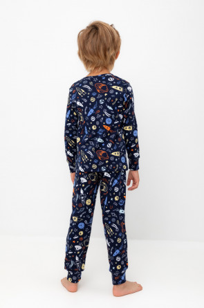 Трикотажная пижама из натурального хлопка. Джемпер с длинными рукавами с эластичными манжетами. У брюк эластичный пояс на резинке. Оригинальная набивка выполнена из стойких, гипоаллергенных текстильных красителей. Пижама сохраняет цвет и форму после многократных стирок. Все трикотажные полотна производятся в соответствии с нормами Швейцарского сертификата ЭкоТекс.