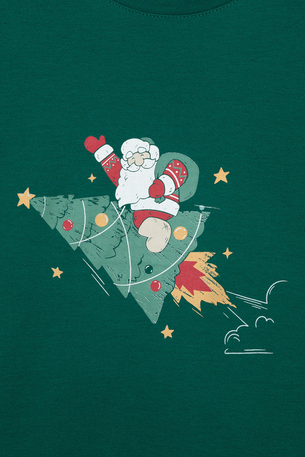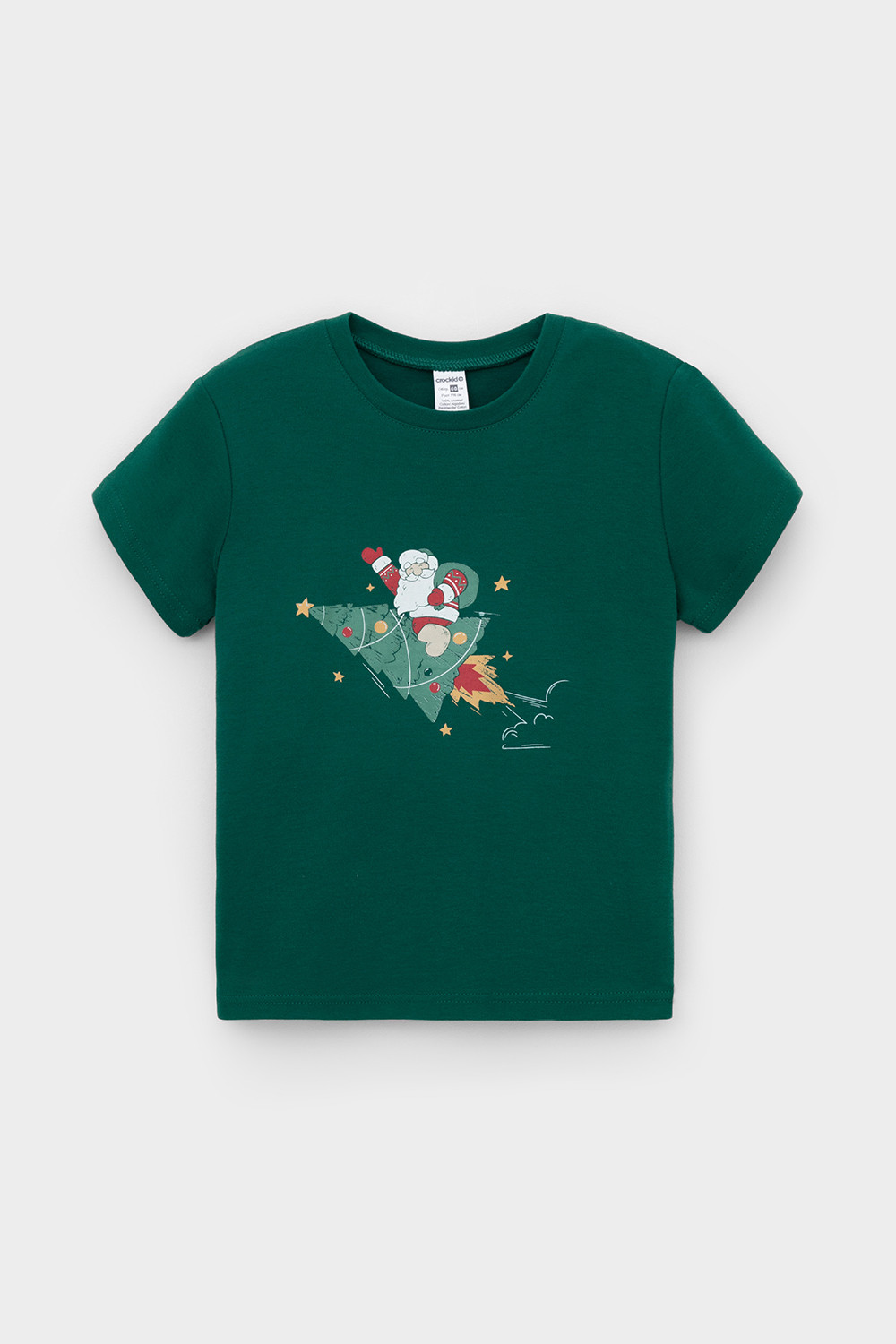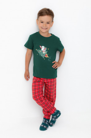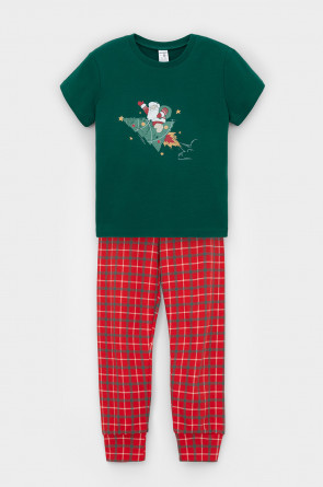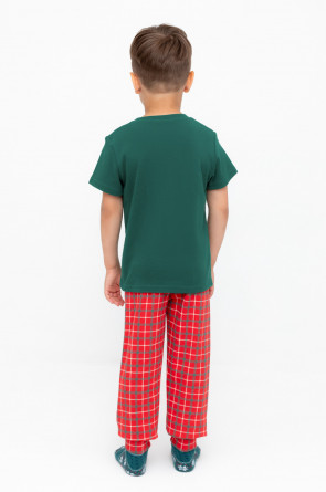 Трикотажная пижама из натурального хлопка. Однотонная футболка с короткими рукавами. Спереди принт. Штаны с набивным рисунком. Эластичные манжеты, цельнокроеный пояс, внутри плоская резинка. Оригинальные принт и набивка выполнены из стойких, гипоаллергенных текстильных красителей. Изделие сохраняет цвет и форму после многократных стирок. Все трикотажные полотна производятся в соответсвии с нормами Швейцарского сертификата ЭкоТекс.