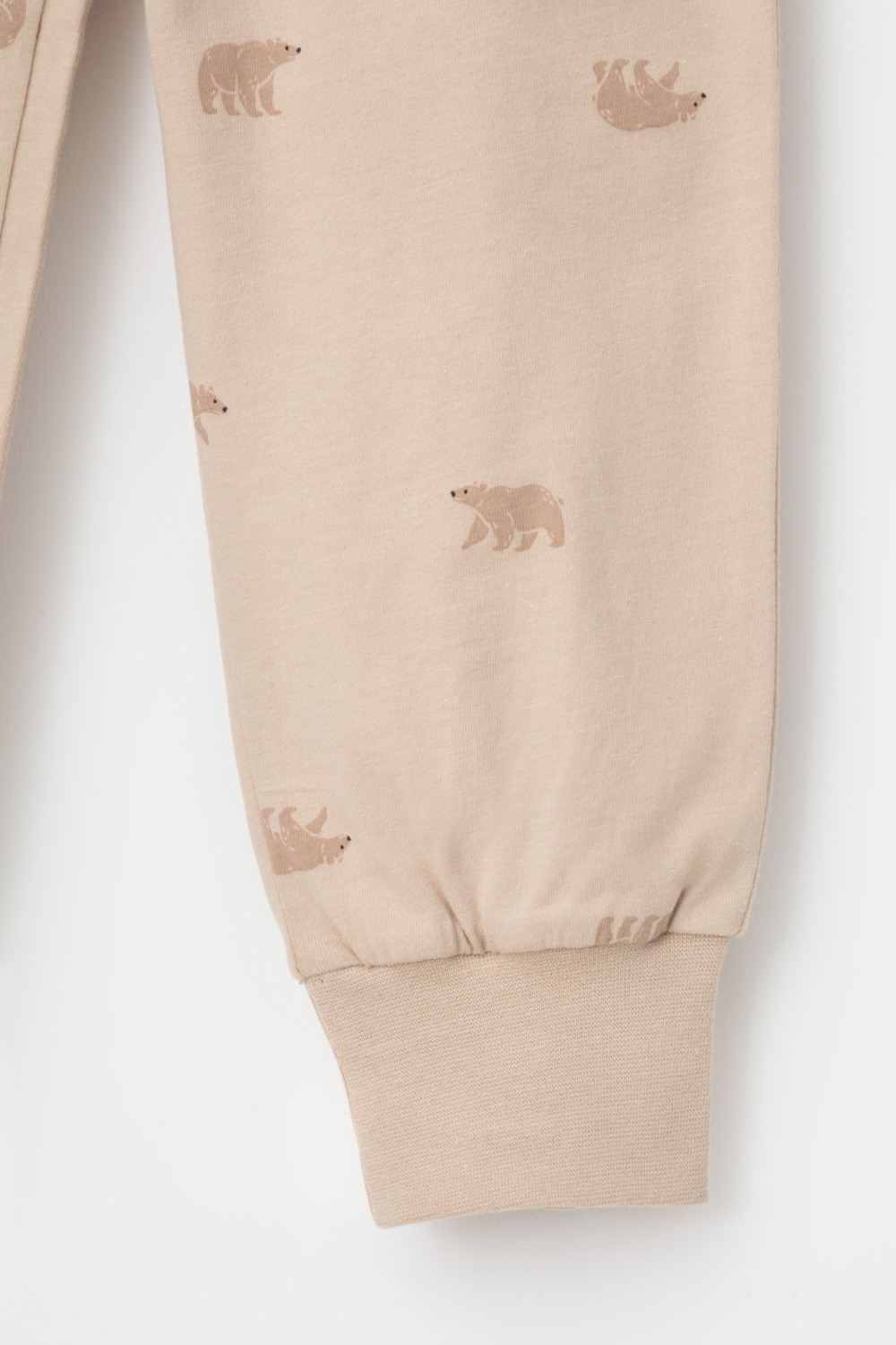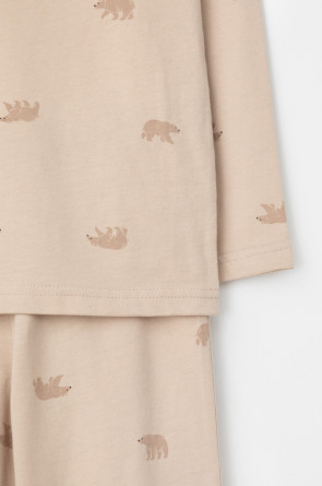 Трикотажная пижама из натурального хлопка. Джемпер с длинными рукавами. У брюк эластичный пояс на резинке, эластичные манжеты. Оригинальные принт и набивка выполнены из стойких, гипоаллергенных текстильных красителей. Пижама сохраняет цвет и форму после многократных стирок. Все трикотажные полотна производятся в соответсвии с нормами Швейцарского сертификата ЭкоТекс.