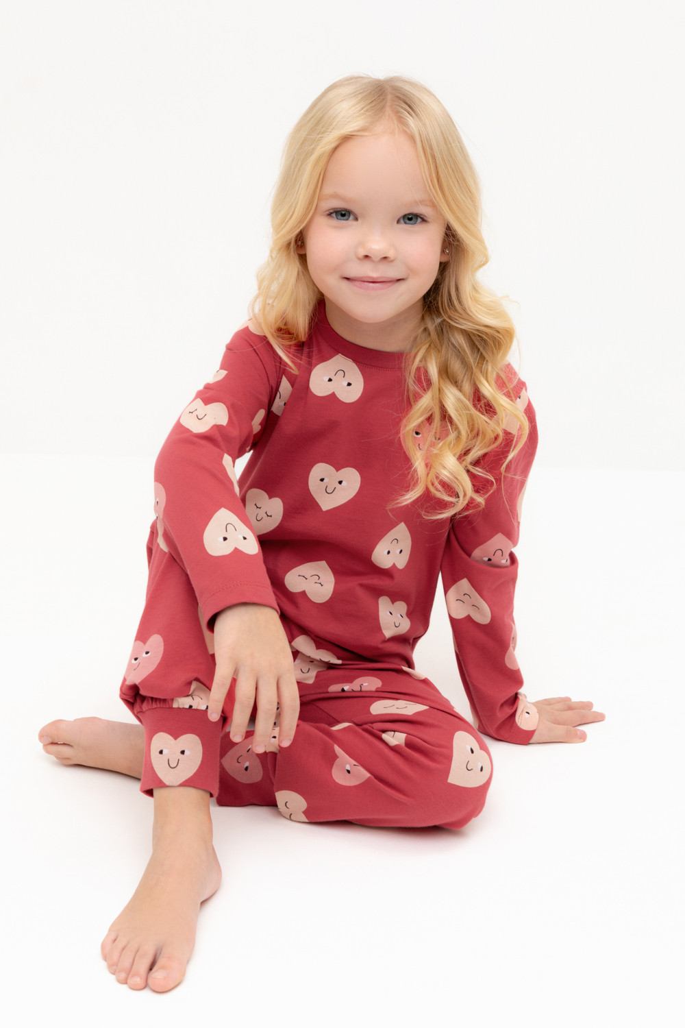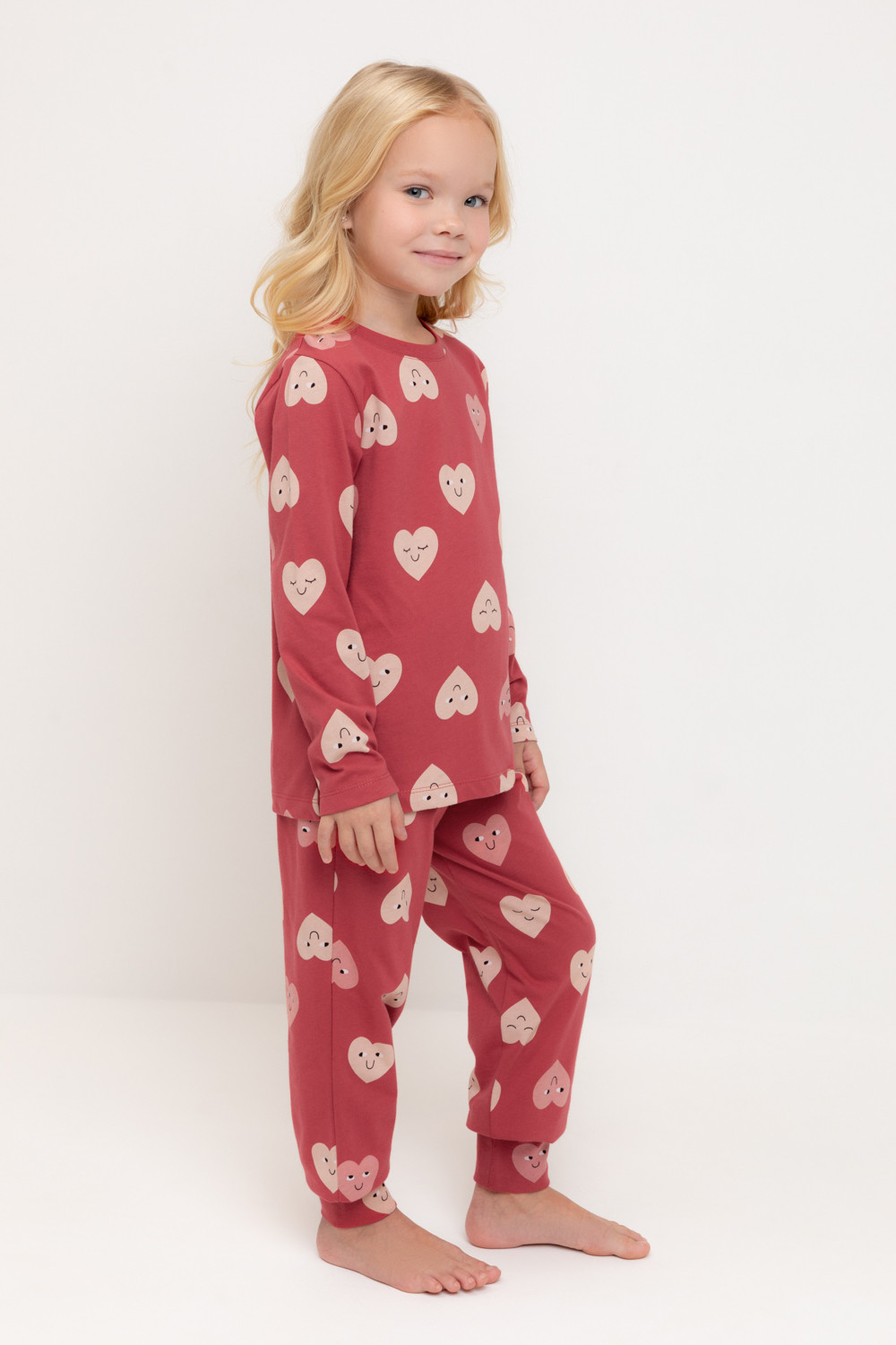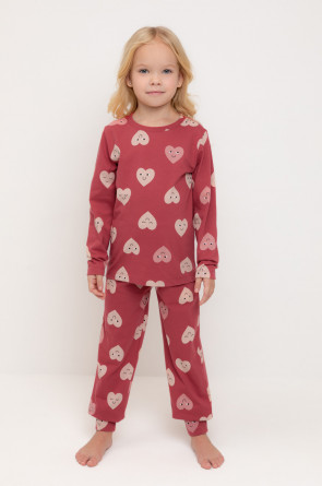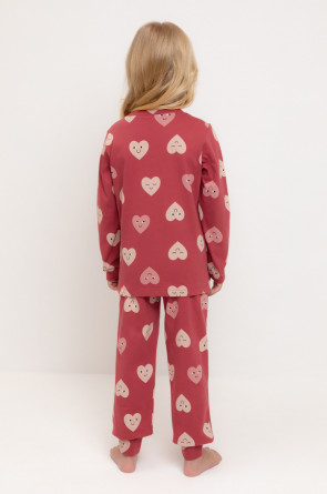 Пижама для девочки из натурального хлопка. Джемпер с длинными втачными рукавами и брюки с эластичной резинкой в поясе. Мягкие манжеты по низу брюк сделаны из материала в рубчик. Оригинальная набивка выполнена из стойких текстильных гипоаллергенных красителей. Изделие сохраняет цвет и форму после многократных стирок. Все трикотажные полотна производятся в соответствии с нормами швейцарского сертификата ЭкоТекс.