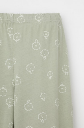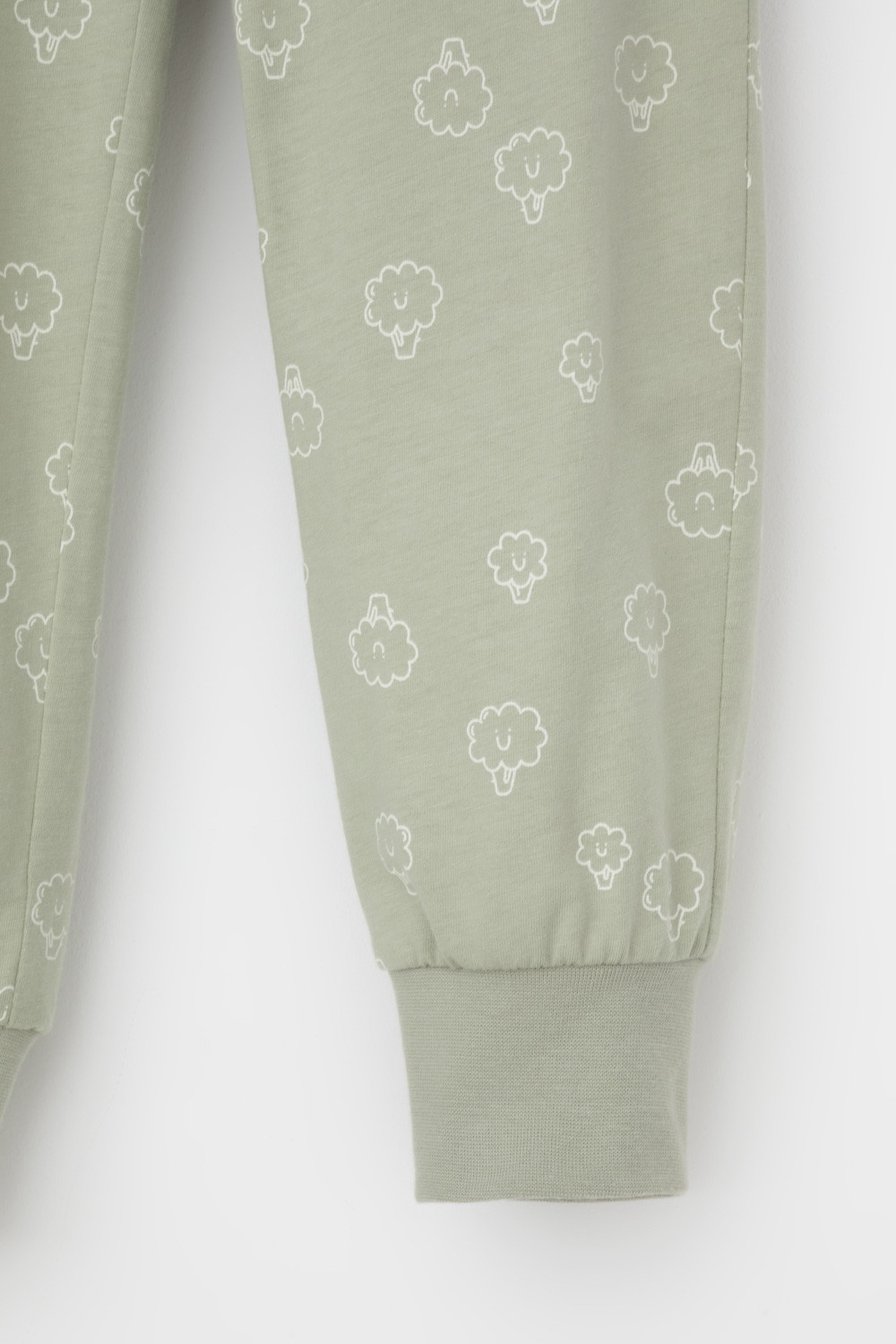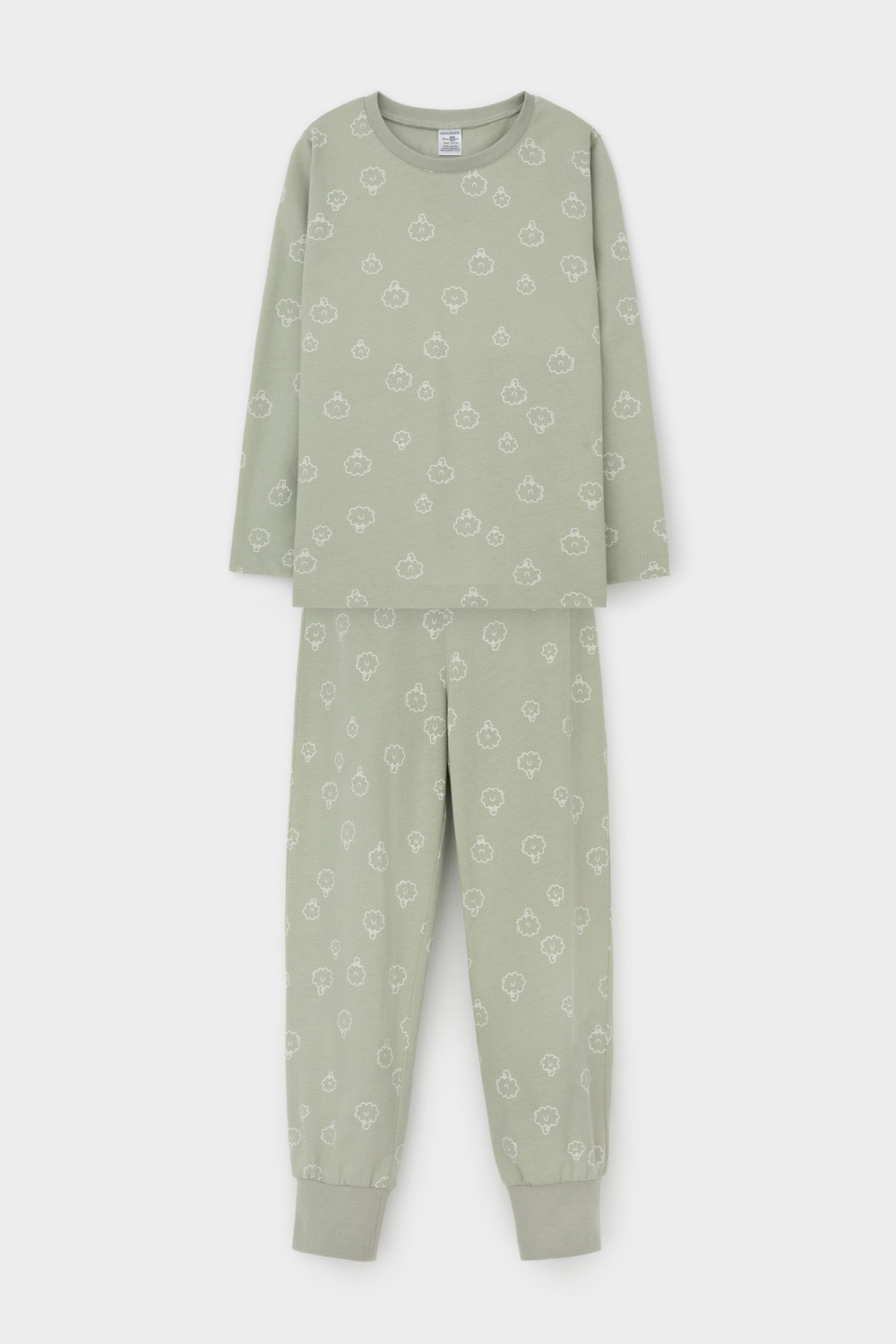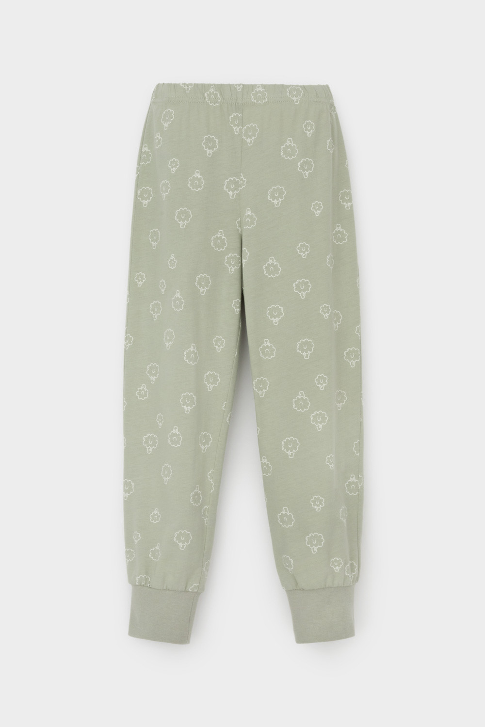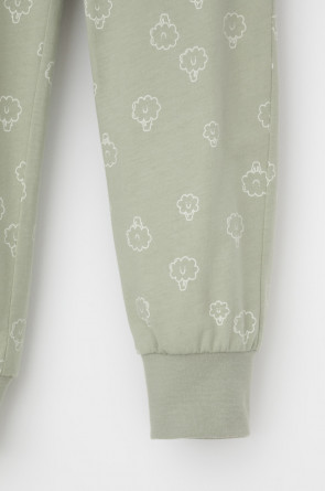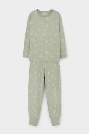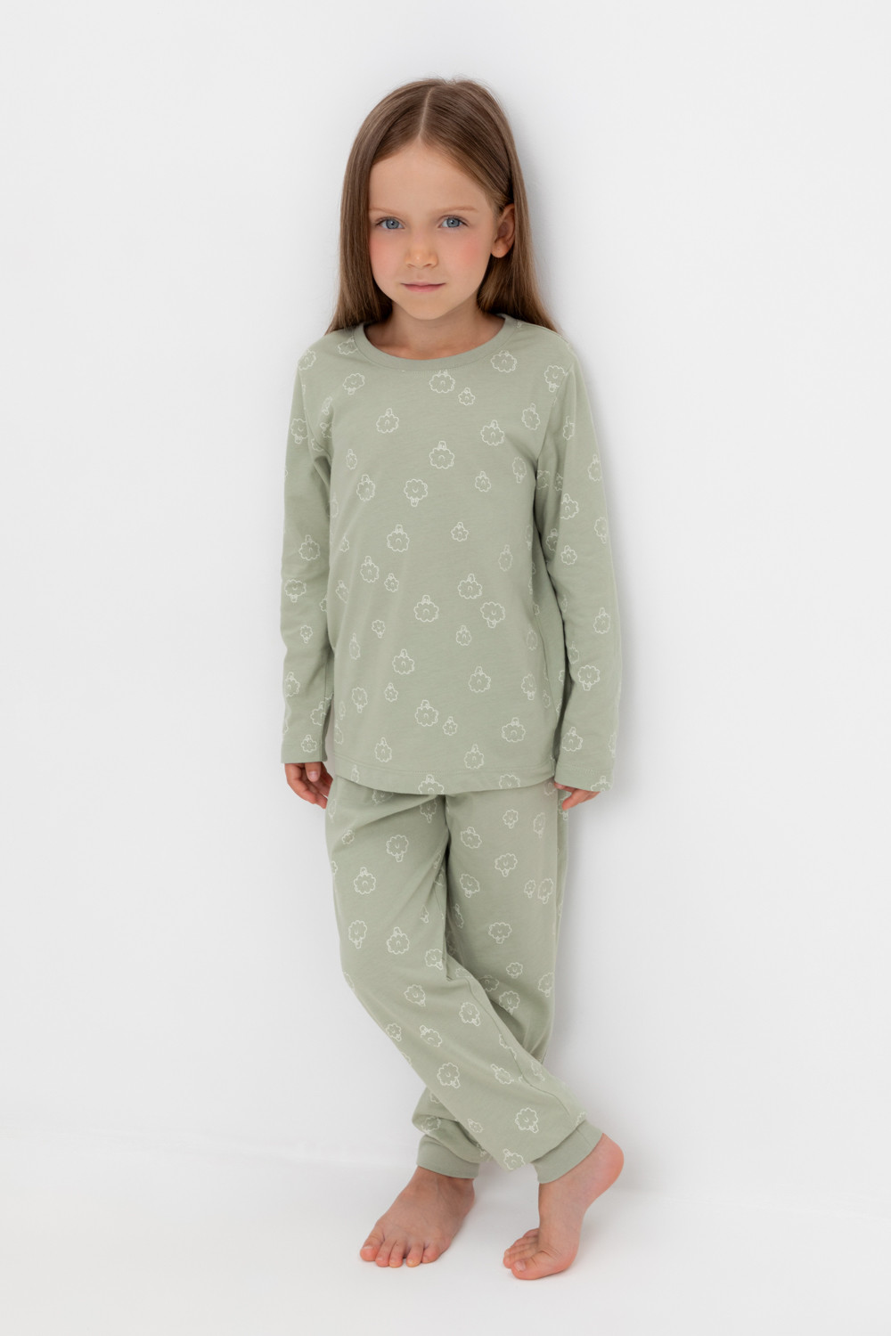 Трикотажная пижама из натурального хлопка. Джемпер с длинными рукавами. У брюк эластичный пояс на резинке, эластичные манжеты. Оригинальная набивка выполнена из стойких, гипоаллергенных текстильных красителей. Пижама сохраняет цвет и форму после многократных стирок. Все трикотажные полотна производятся в соответсвии с нормами Швейцарского сертификата ЭкоТекс.