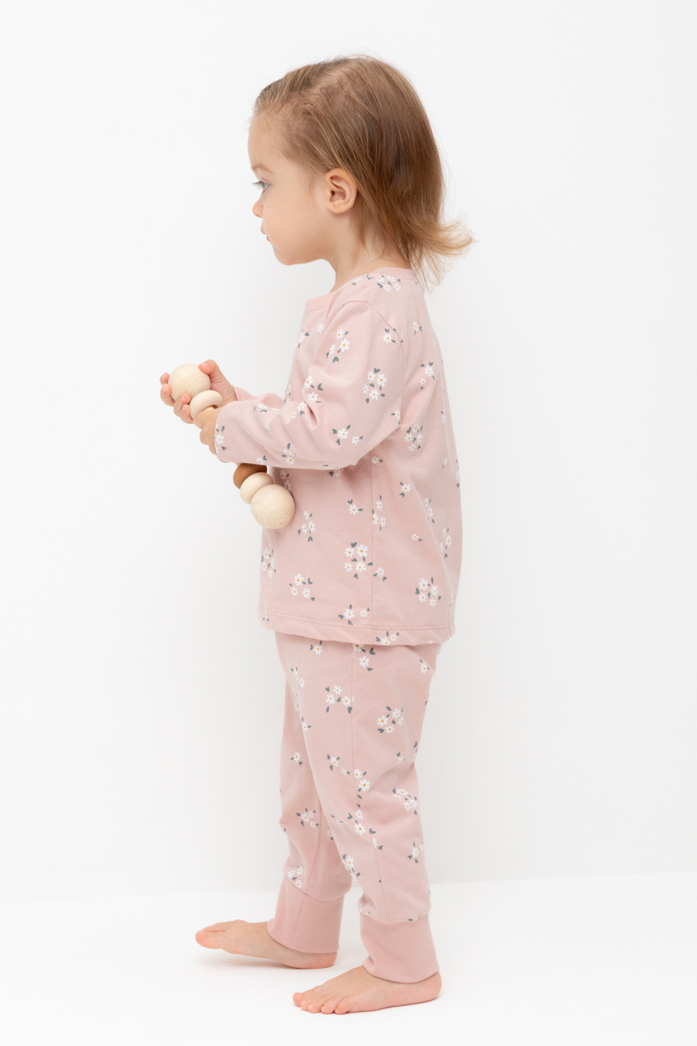 Трикотажная пижама из натурального хлопка. Джемпер с длинными втачными рукавами. У брюк в комплекте мягкий, эластичный пояс на резинке. Оригинальная набивка выполнена из стойких, гипоаллергенных текстильных красителей. Комплект сохраняет цвет и форму после многократных стирок. Все трикотажные полотна производятся в соответсвии с нормами Швейцарского сертификата ЭкоТекс.