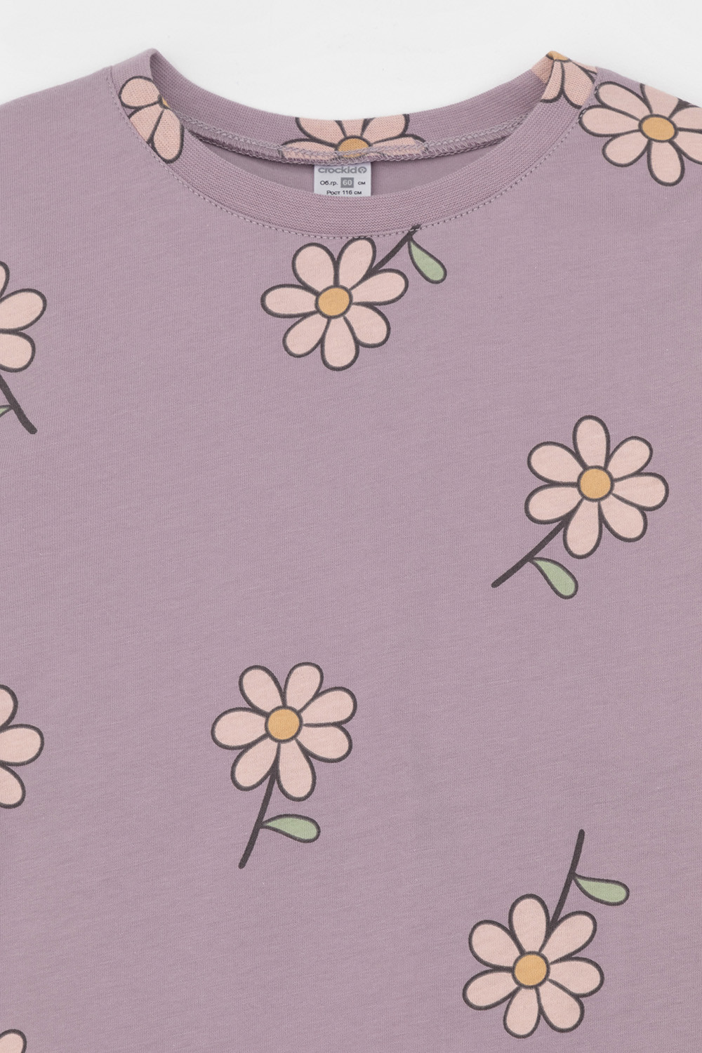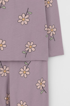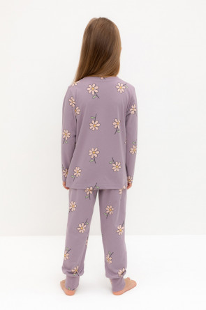 Пижама для девочки из натурального хлопка. Джемпер с длинными втачными рукавами и брюки с эластичной резинкой в поясе. Мягкие манжеты по низу брюк сделаны из материала в рубчик. Оригинальная набивка выполнена из стойких текстильных гипоаллергенных красителей. Изделие сохраняет цвет и форму после многократных стирок. Все трикотажные полотна производятся в соответствии с нормами швейцарского сертификата ЭкоТекс.