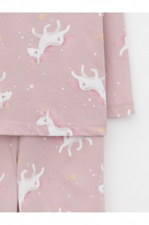 Пижама для девочки из натурального хлопка. Джемпер с длинными втачными рукавами и брюки с эластичной резинкой в поясе. Мягкие манжеты по низу брюк сделаны из материала в рубчик. Оригинальная набивка выполнена из стойких текстильных гипоаллергенных красителей. Изделие сохраняет цвет и форму после многократных стирок. Все трикотажные полотна производятся в соответствии с нормами швейцарского сертификата ЭкоТекс.