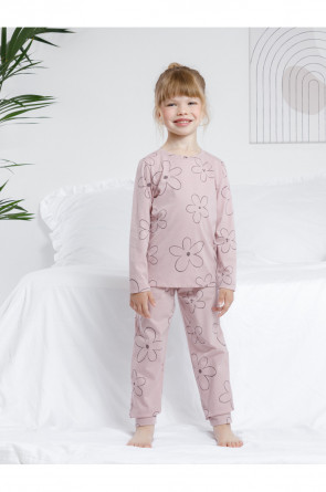 Пижама для девочки из натурального хлопка. Джемпер с длинными втачными рукавами и брюки с эластичной резинкой в поясе. Мягкие манжеты по низу брюк сделаны из материала в рубчик. Оригинальная набивка выполнена из стойких текстильных гипоаллергенных красителей. Изделие сохраняет цвет и форму после многократных стирок. Все трикотажные полотна производятся в соответствии с нормами швейцарского сертификата ЭкоТекс.