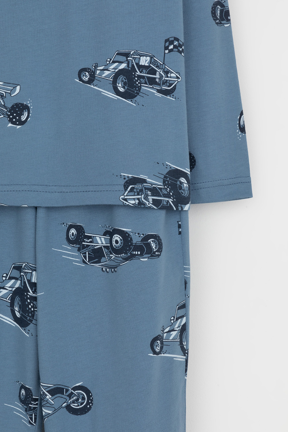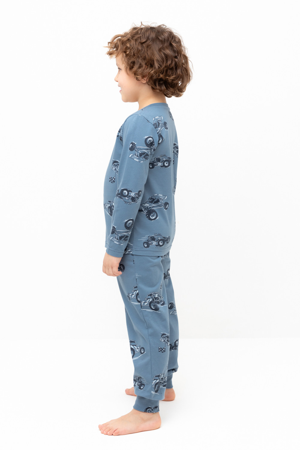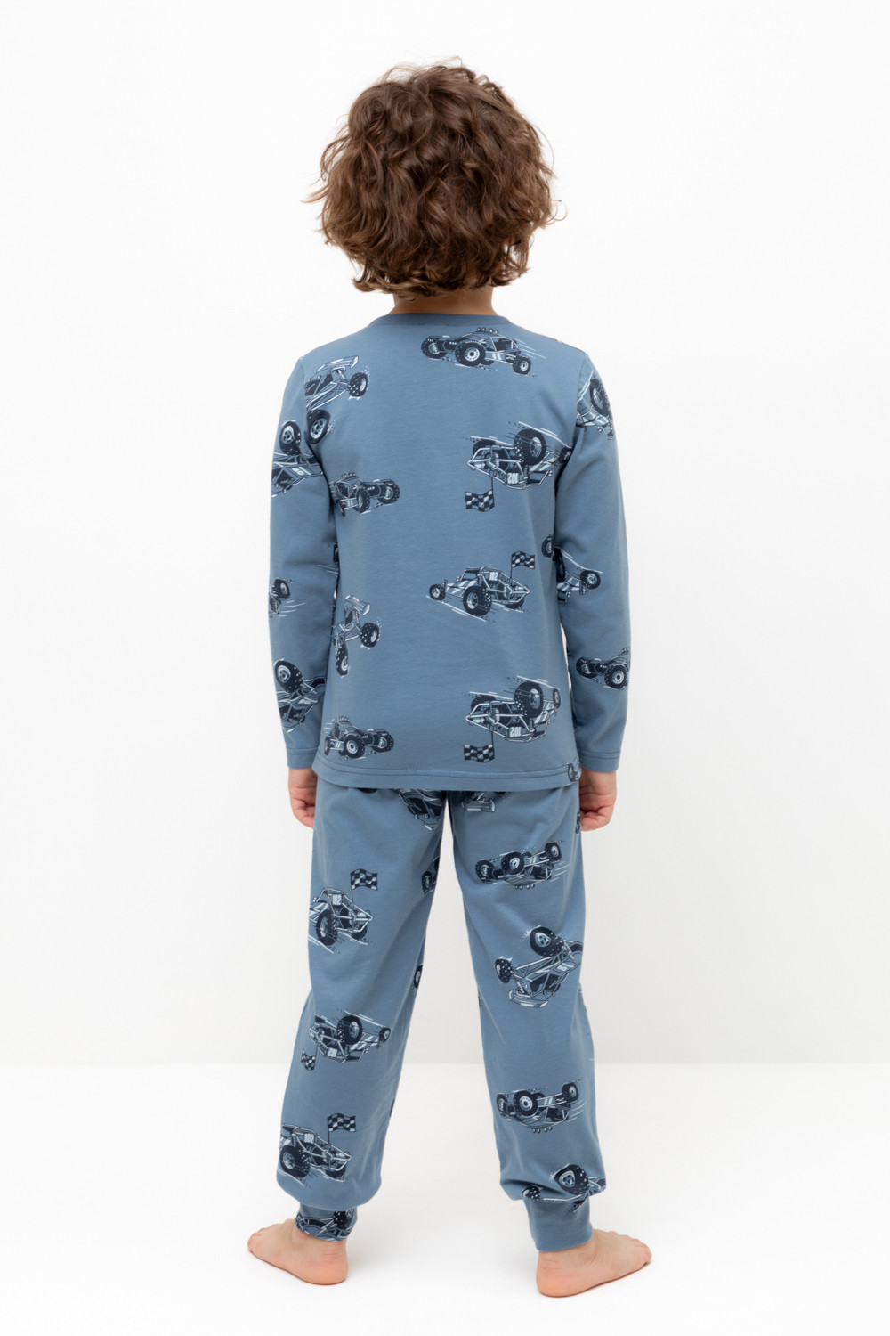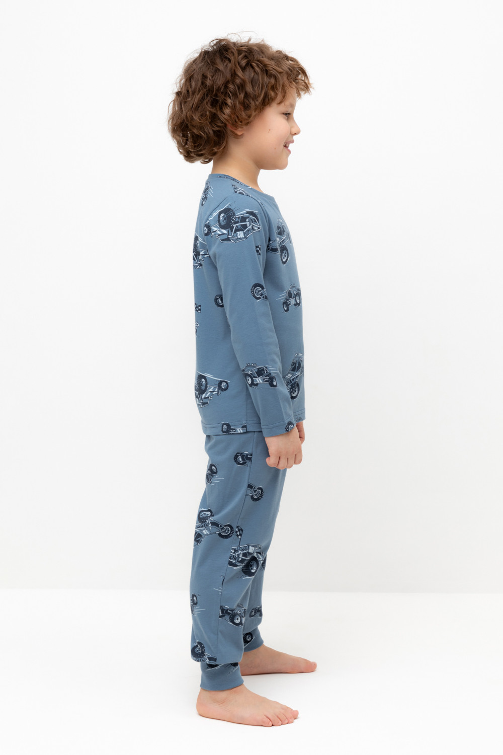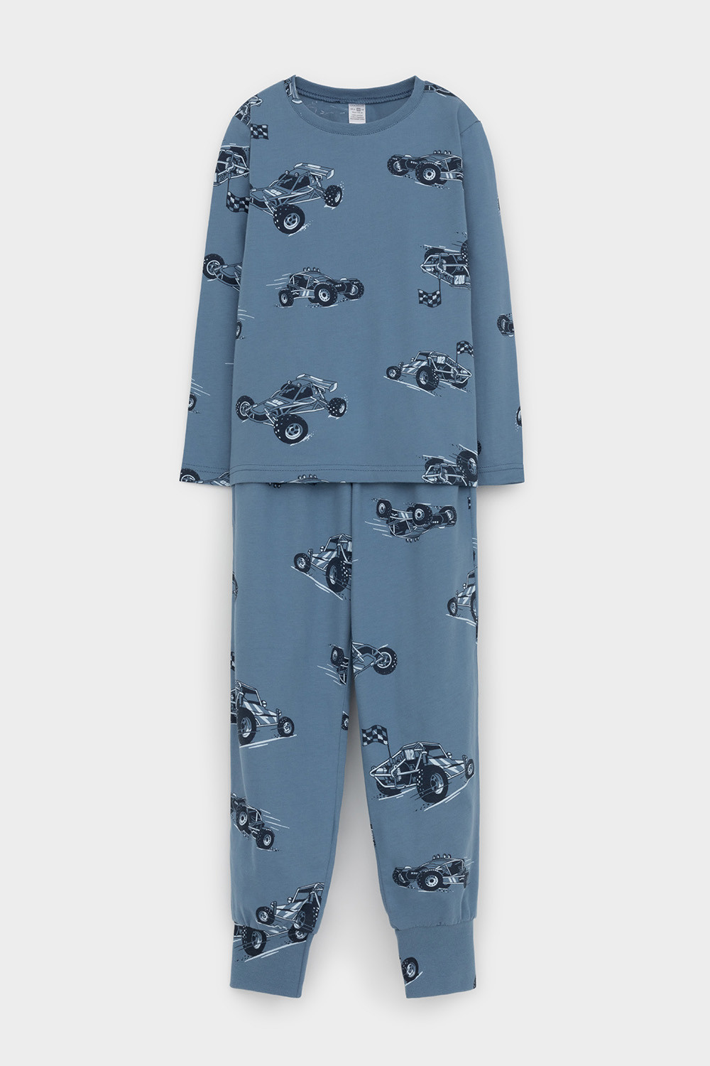 Трикотажная пижама из натурального хлопка. Джемпер с длинными втачными рукавами и брюки с эластичной резинкой в поясе. Мягкие манжеты по низу брюк. Оригинальная набивка выполнена из стойких гипоаллергенных текстильных гипоаллергенных красителей. Изделие сохраняет цвет и форму после многократных стирок. Все трикотажные полотна производятся в соответсвии с нормами швейцарского сертификата ЭкоТекс.