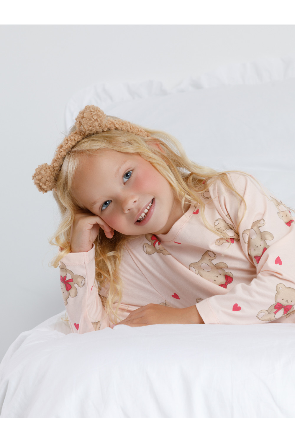 Пижама для девочки из натурального хлопка. Джемпер с длинными втачными рукавами и брюки с эластичной резинкой в поясе. Мягкие манжеты по низу брюк сделаны из материала в рубчик. Оригинальная набивка выполнена из стойких текстильных гипоаллергенных красителей. Изделие сохраняет цвет и форму после многократных стирок. Все трикотажные полотна производятся в соответствии с нормами швейцарского сертификата ЭкоТекс.
