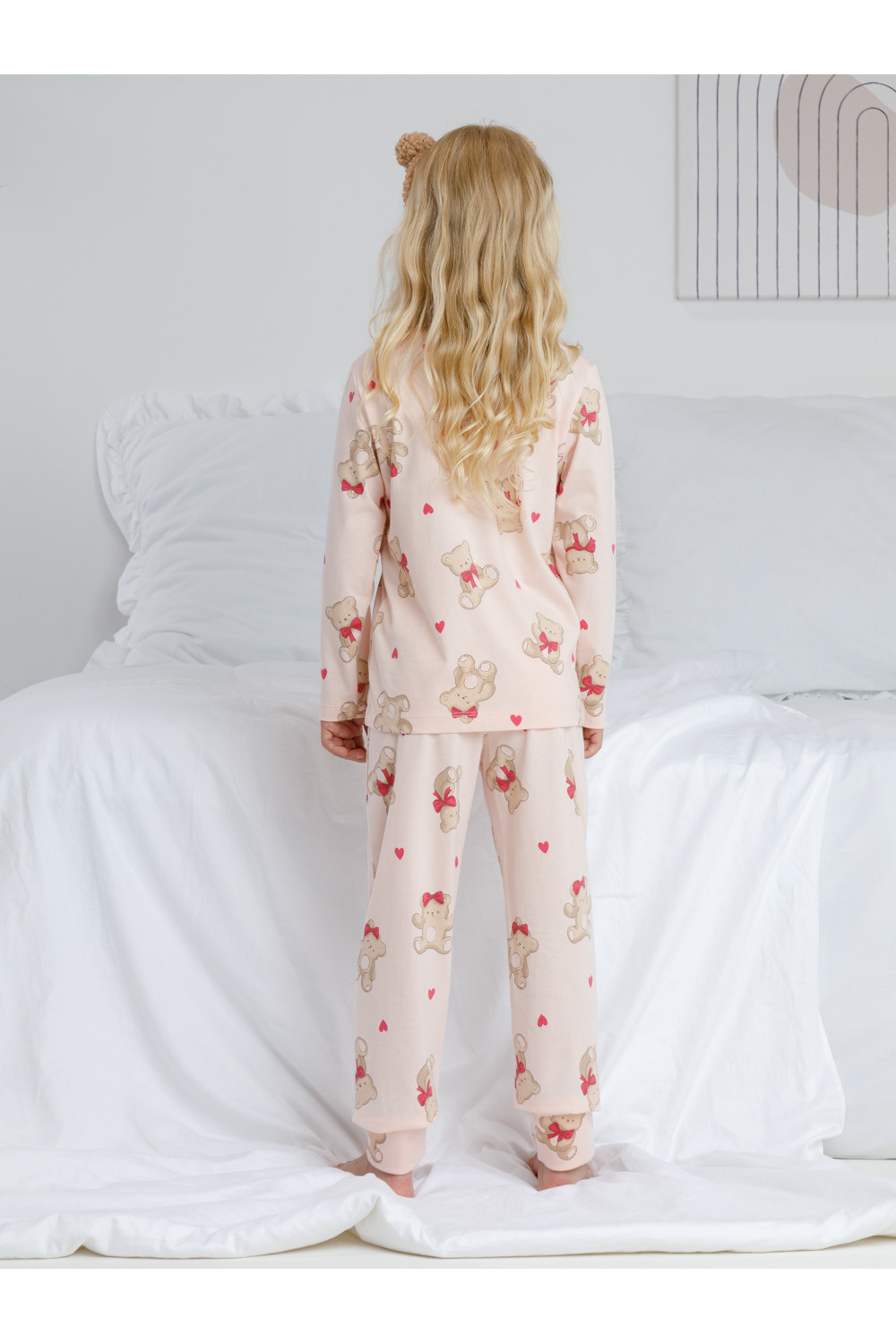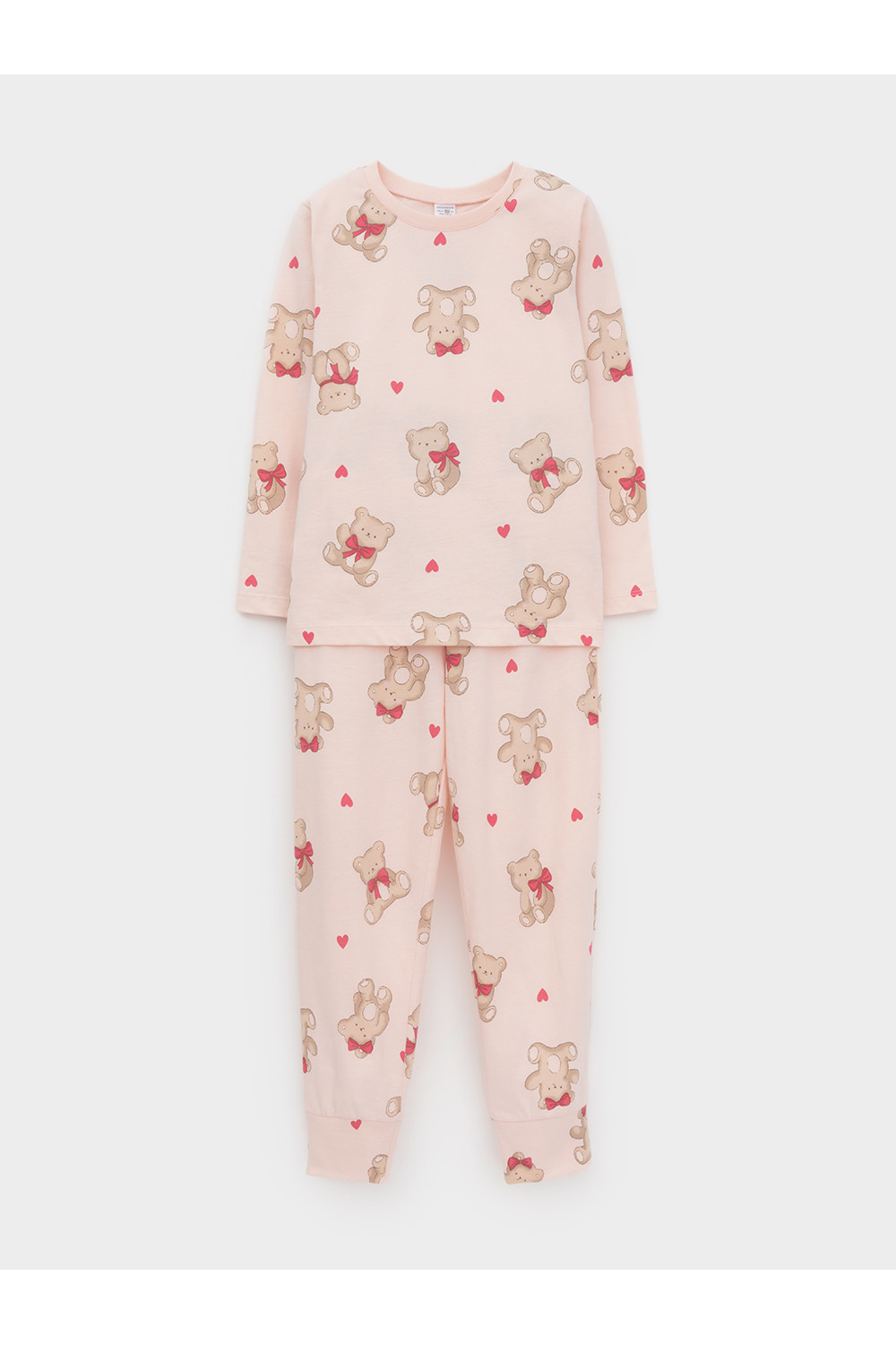 Пижама для девочки из натурального хлопка. Джемпер с длинными втачными рукавами и брюки с эластичной резинкой в поясе. Мягкие манжеты по низу брюк сделаны из материала в рубчик. Оригинальная набивка выполнена из стойких текстильных гипоаллергенных красителей. Изделие сохраняет цвет и форму после многократных стирок. Все трикотажные полотна производятся в соответствии с нормами швейцарского сертификата ЭкоТекс.