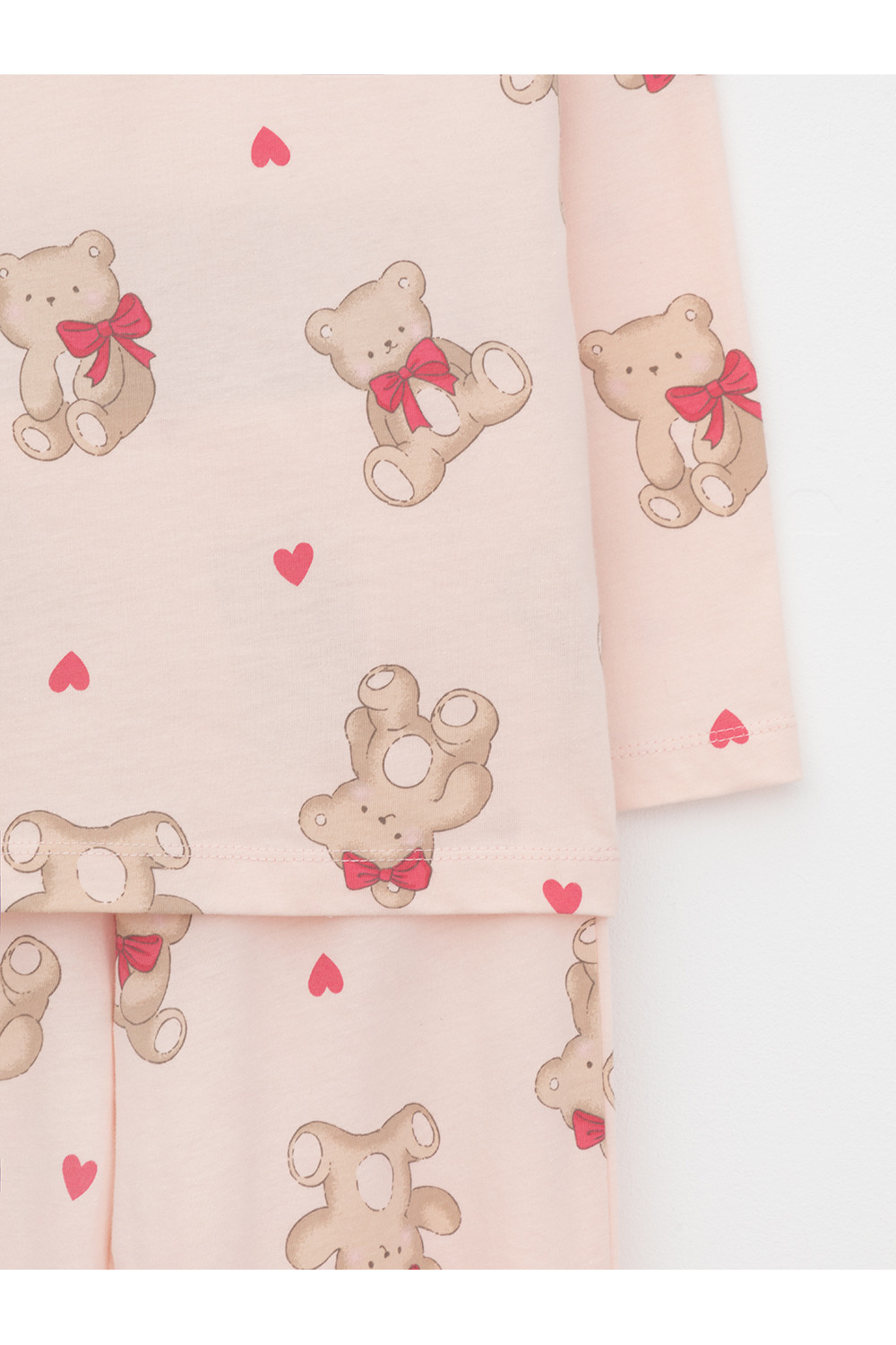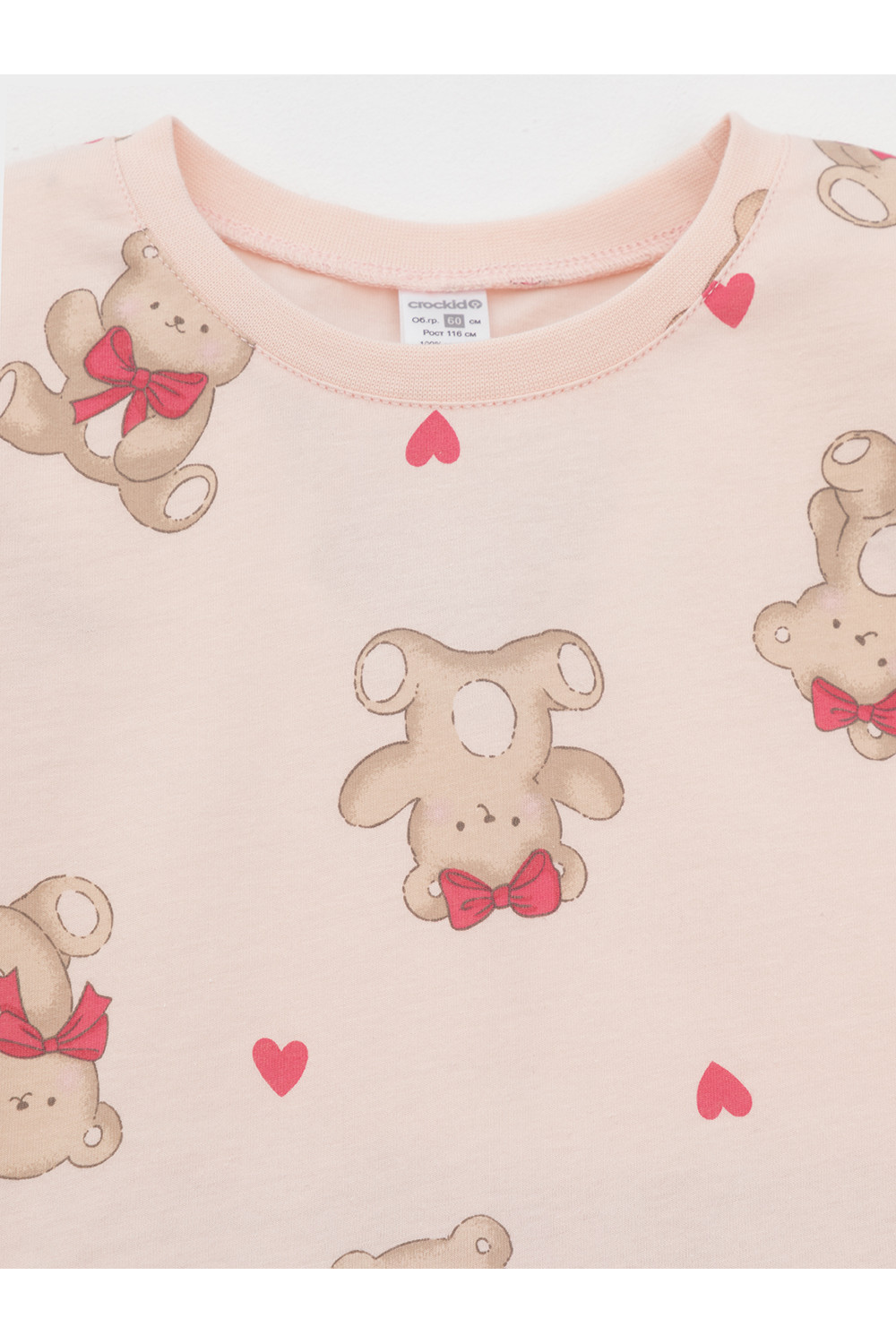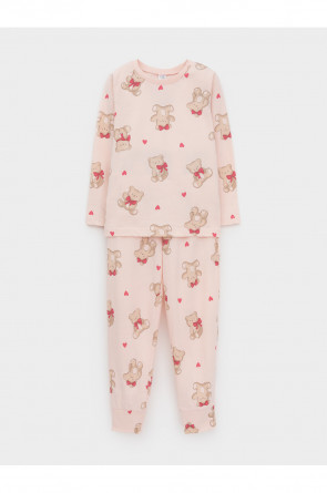 Пижама для девочки из натурального хлопка. Джемпер с длинными втачными рукавами и брюки с эластичной резинкой в поясе. Мягкие манжеты по низу брюк сделаны из материала в рубчик. Оригинальная набивка выполнена из стойких текстильных гипоаллергенных красителей. Изделие сохраняет цвет и форму после многократных стирок. Все трикотажные полотна производятся в соответствии с нормами швейцарского сертификата ЭкоТекс.