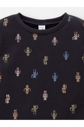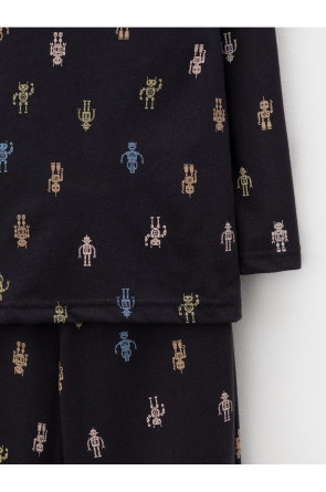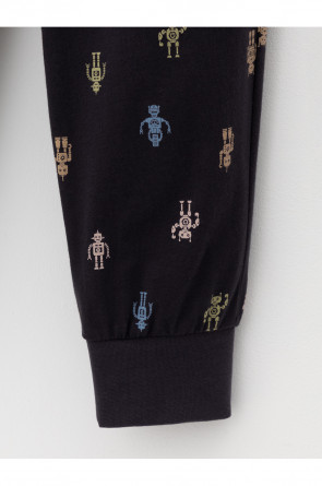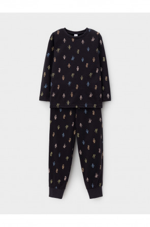 Трикотажная пижама из натурального хлопка. Джемпер с длинными рукавами. У брюк эластичный пояс на резинке, эластичные манжеты. Оригинальная набивка выполнена из стойких, гипоаллергенных текстильных красителей. Пижама сохраняет цвет и форму после многократных стирок. Все трикотажные полотна производятся в соответсвии с нормами Швейцарского сертификата ЭкоТекс.