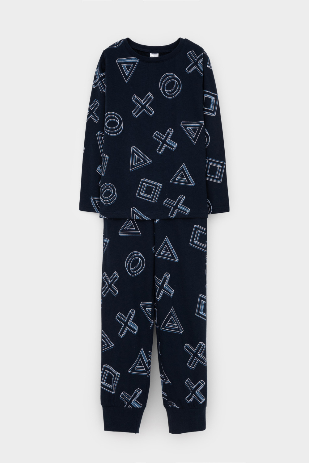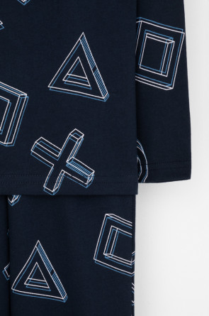 Трикотажная пижама из натурального хлопка. Джемпер с длинными рукавами с эластичными манжетами. У брюк эластичный пояс на резинке. Оригинальная набивка и принт выполнены из стойких, гипоаллергенных текстильных красителей. Пижама сохраняет цвет и форму после многократных стирок. Все трикотажные полотна производятся в соответствии с нормами Швейцарского сертификата ЭкоТекс.