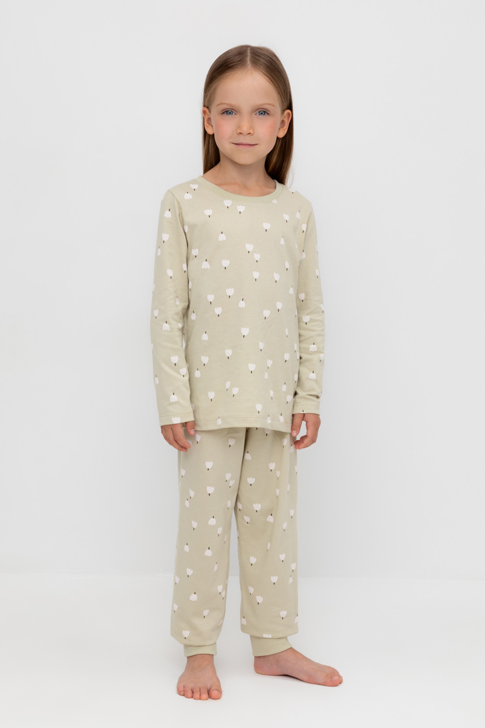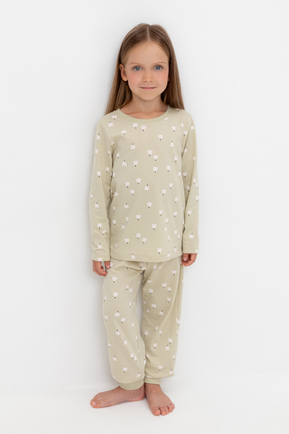 Трикотажная пижама из натурального хлопка. Джемпер с длинными втачными рукавами. У брюк в комплекте мягкий, эластичный пояс на резинке. Оригинальная набивка выполнена из стойких, гипоаллергенных текстильных красителей. Комплект сохраняет цвет и форму после многократных стирок. Все трикотажные полотна производятся в соответсвии с нормами Швейцарского сертификата ЭкоТекс.