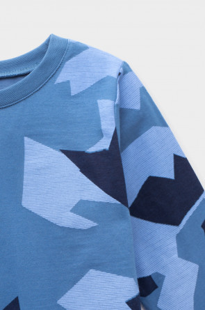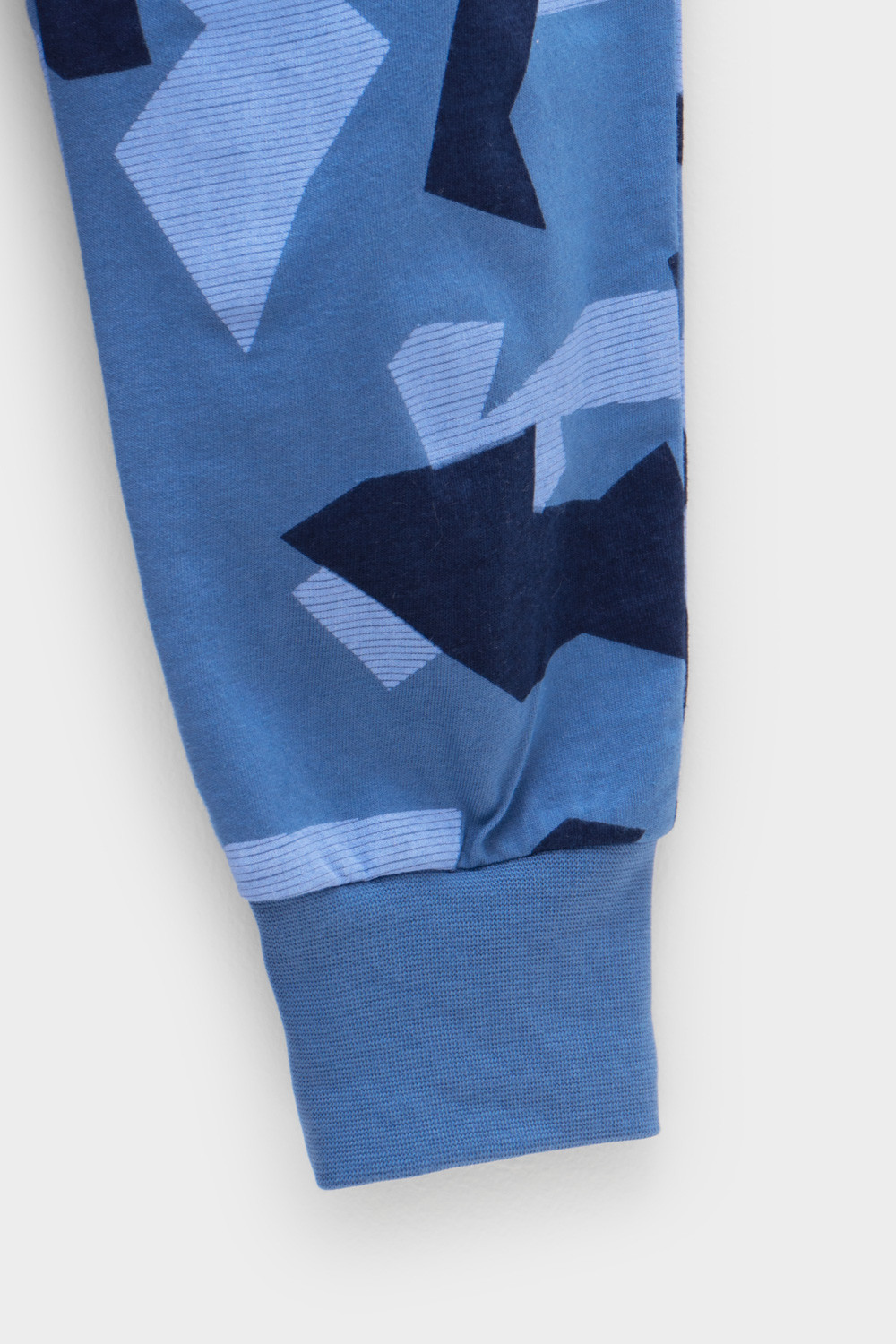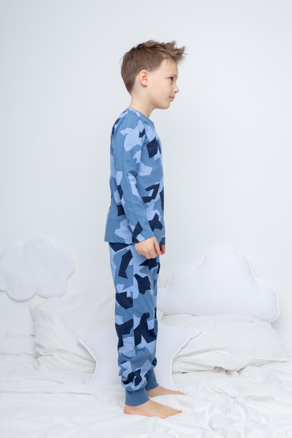 Трикотажная пижама из натурального хлопка. Джемпер с длинными рукавами с эластичными манжетами. У брюк эластичный пояс на резинке. Оригинальная набивка и принт выполнены из стойких, гипоаллергенных текстильных красителей. Пижама сохраняет цвет и форму после многократных стирок. Все трикотажные полотна производятся в соответствии с нормами Швейцарского сертификата ЭкоТекс.